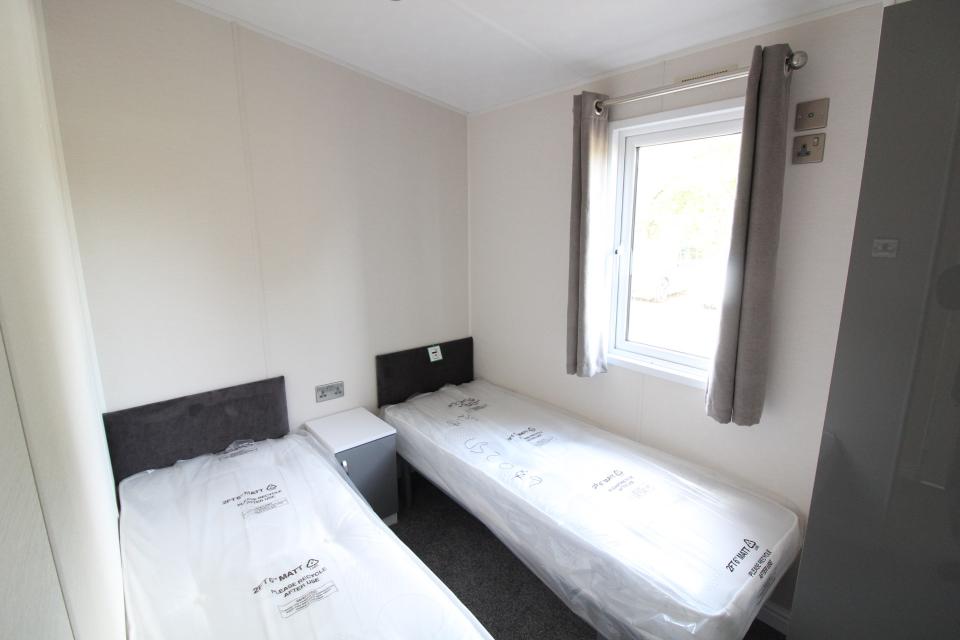 The lounge has room to put in your own furniture. Fitted kitchen with LPG gas cooker, fridge and good storage. This caravan also boasts a utility room with washer/dryer and storage. Combined shower room and toilet. One specious twin bedroom and a master bedroom complete with king size bed, en-suite WC. 2020 model.