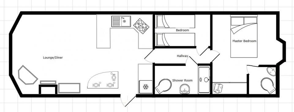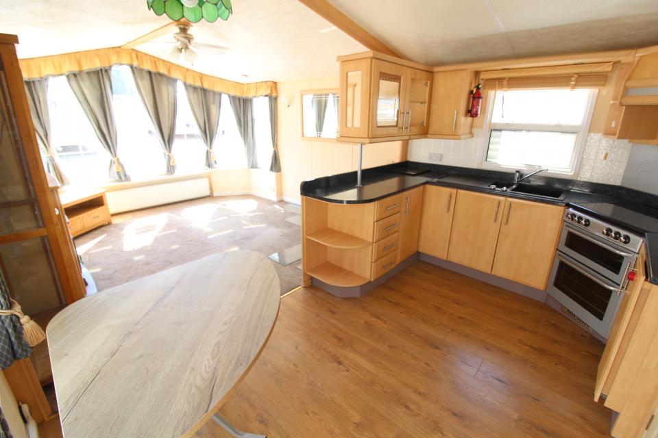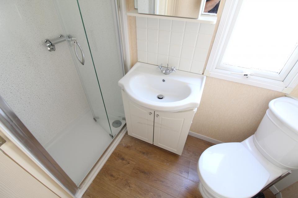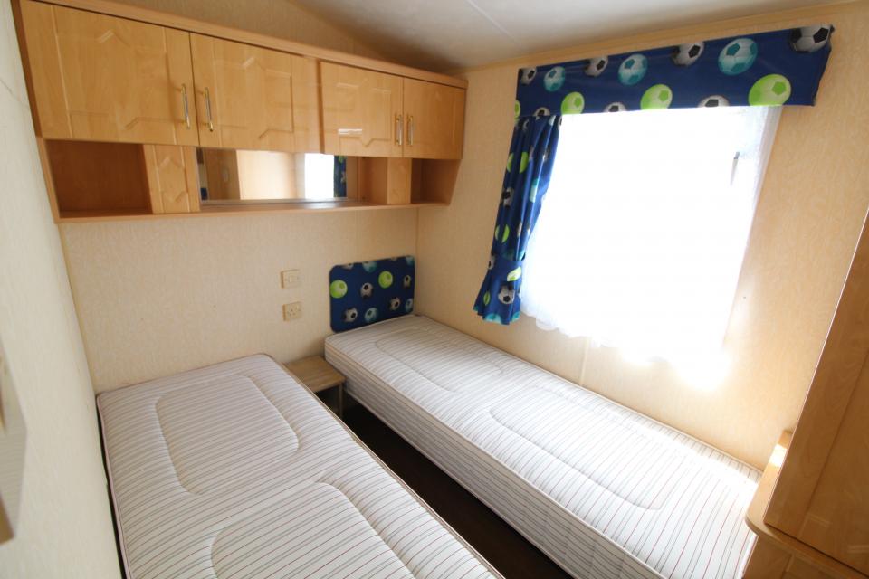 A 12ft wide 2 bedroom caravan. Double glazed and LPG gas central heating. The lounge is open plan with room to put in your own furniture. The dining area has a free standing table. Fitted kitchen with an LPG gas cooker and good storage. Combined shower room and toilet. Large shower. One twin bedrooms and one double bedroom with ensuite toilet. A good 2005 caravan.
