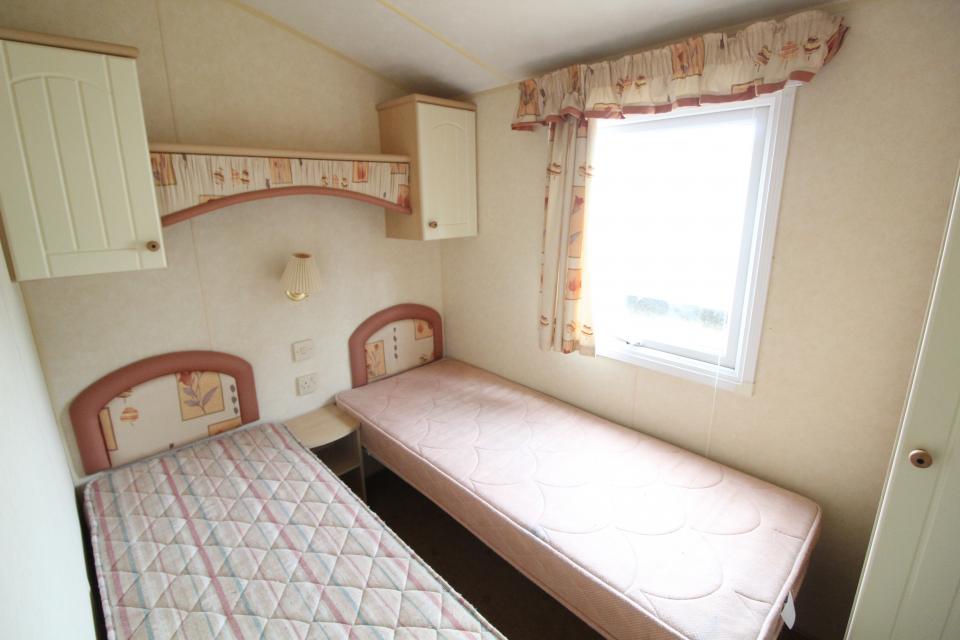 A 12ft wide 2 bedroom caravan. Double Glazed. The lounge has fixed seating, LPG gas fire, apex ceiling and new carpet. The dining area has room to put in your own furniture. Fitted kitchen with an LPG gas cooker, good storage and new lino. The shower room is fitted with a wash basin, toilet, large shower cubicle and new lino. One twin bedroom and one double bedroom. A good 2006 caravan.