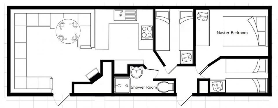A 12ft wide 3 bedroom caravan. The lounge has fixed seating and an LPG gas fire. The dining area has fixed seating and a free standing table. Fitted kitchen with and LPG gas cooker and good storage. The shower room is fitted with a wash basin, toilet and standard shower cubicle. Two twin bedrooms and one double bedroom. A good 2006 caravan.