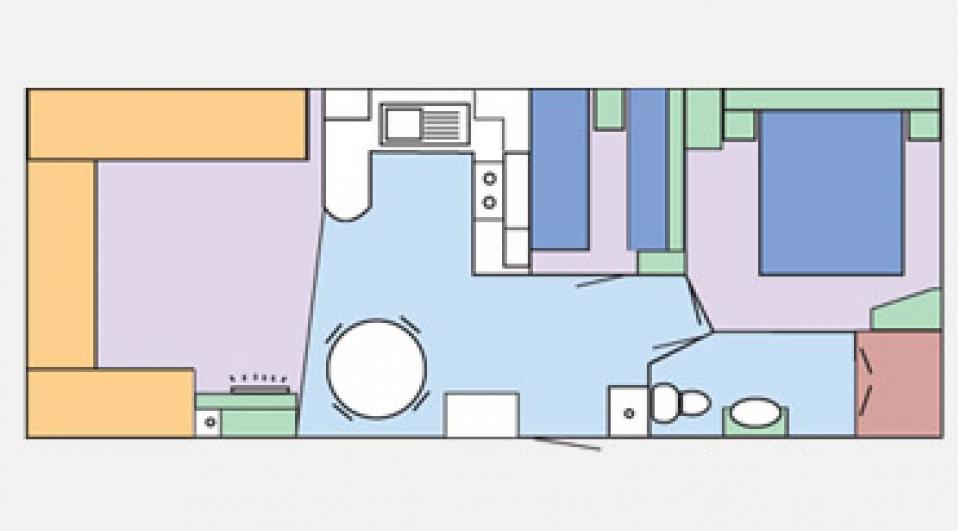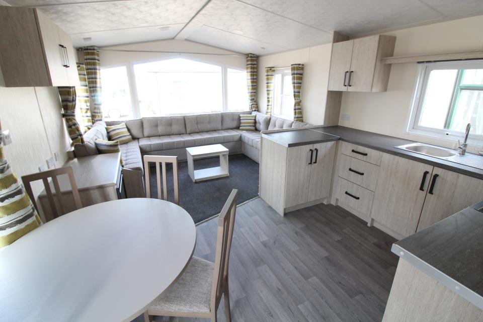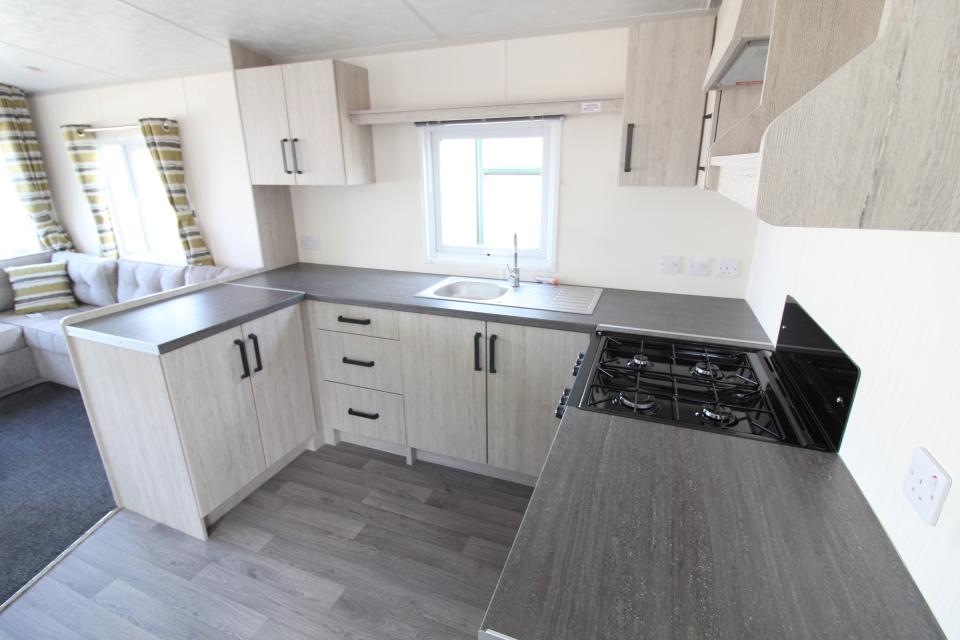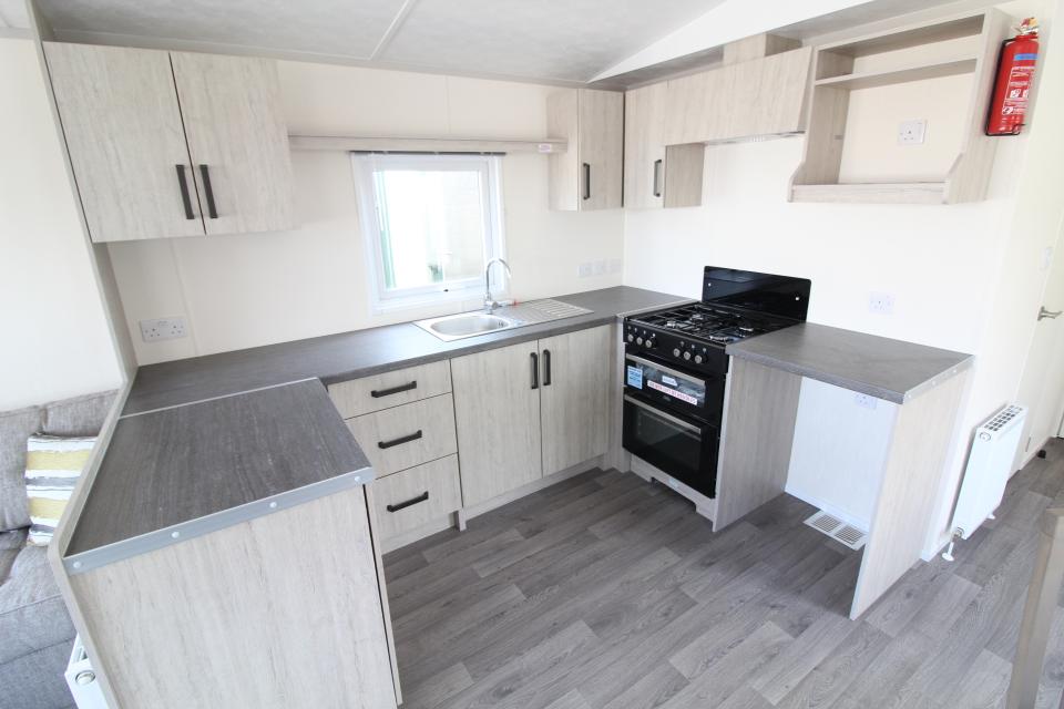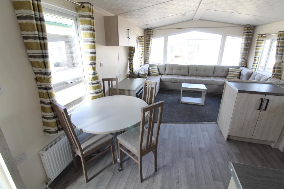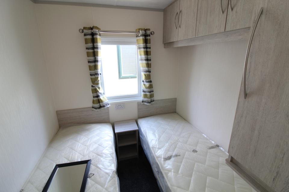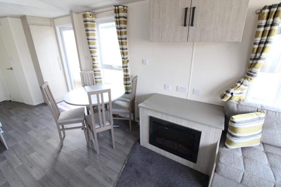 A brand new 12ft wide 2 bedroom caravan. Gas centrally heated and double glazed. The lounge has fixed seating with scatter cushions, apex ceiling and electric fire. The dining area has a free standing dining table and chairs. Fitted kitchen with an LPG gas cooker and good storage. One twin bedroom and one double bedroom. Combined shower room and toilet. An excellent 2020 caravan