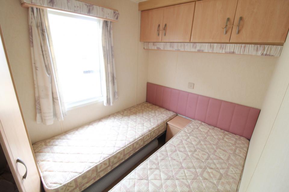 A 12ft wide 2 bedroom caravan. Double Glazed and LPG gas warm air heated. The lounge has fixed seating and an LPG gas fire. The separate dining area has a free standing table and chairs. Fitted kitchen with a high level LPG gas cooker and separate hob. The shower room is fitted with a wash basin, toilet and large shower. Additional separate toilet. One twin bedroom and one double bedroom. A good 2005 caravan.