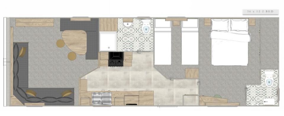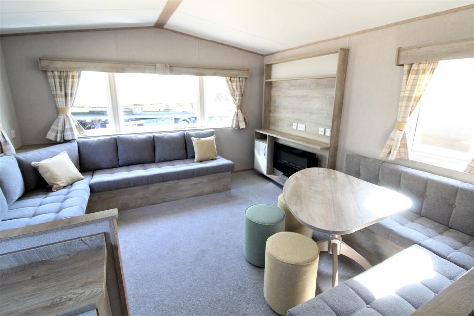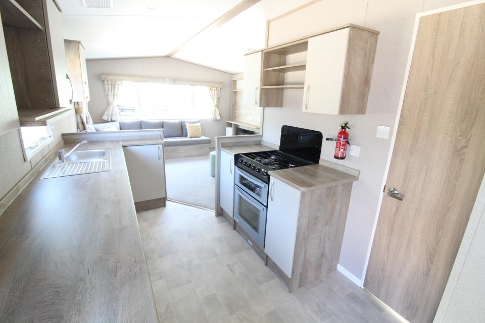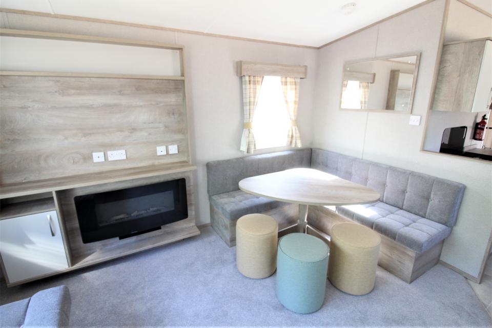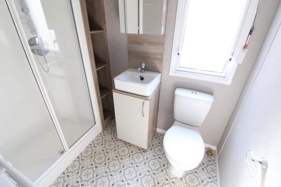 A 12ft wide 2 bedroom caravan. LPG gas central heating and double glazed. The lounge has fixed seating, apex ceiling and an electric fire. Tastefully decorated in a modern colour scheme. The dining area has fixed seating and a free standing table. Fitted kitchen with an LPG cooker and great storage. The shower room is fitted with a wash basin, toilet and large shower. One twin bedroom and one double bedroom with an ensuite toilet. An excellent 2024 caravan.
