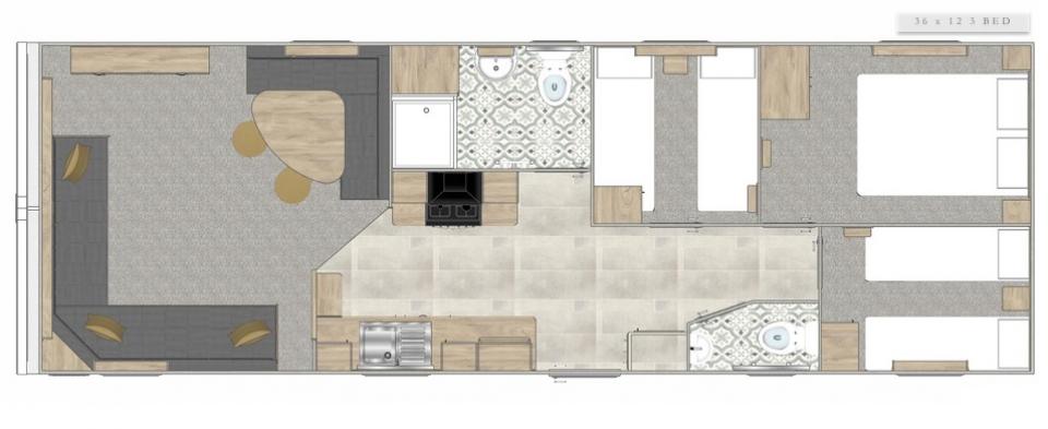 A 12ft wide 3 bedroom caravan. LPG gas central heating and double glazed. The lounge has fixed seating, apex ceiling and an electric fire. Tastefully decorated in a modern colour scheme. The dining area has fixed seating and a free standing table. Fitted kitchen with an LPG cooker and great storage. The shower room is fitted with a wash basin, toilet and large shower. Additional separate toilet. Two twin bedrooms and one double bedroom. An excellent 2024 caravan.