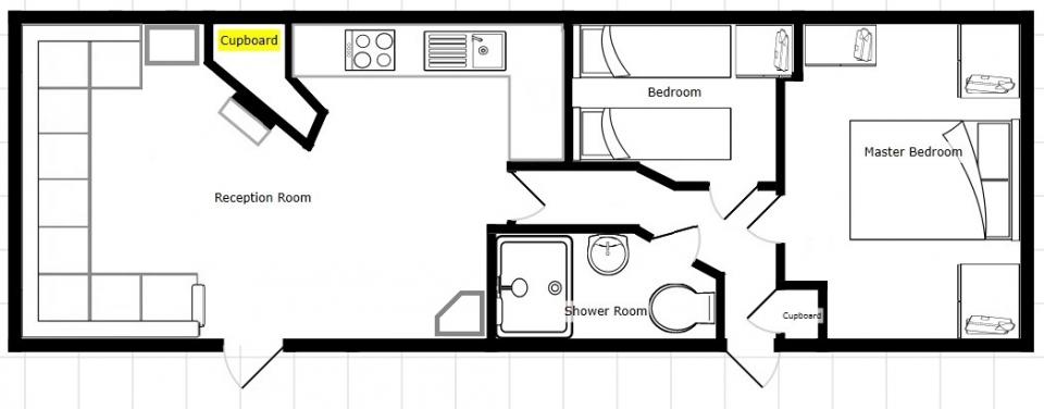 A 12ft wide 2 bedroom caravan. The lounge has fixed seating, apex ceiling and an LPG gas fire. The dining area has room for a free standing table and chairs. Fitted kitchen with an LPG gas cooker and good storage. The shower room is fitted with a wash basin, toilet and large shower cubicle. One twin bedroom and one double bedroom caravan. A 2005 caravan.