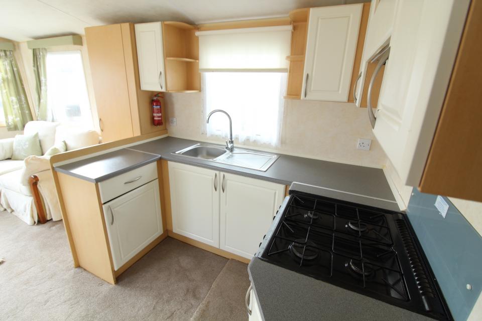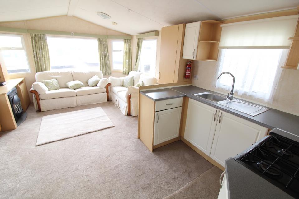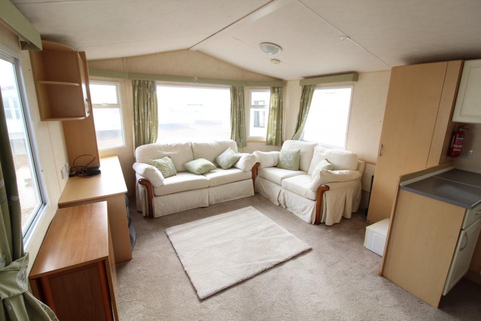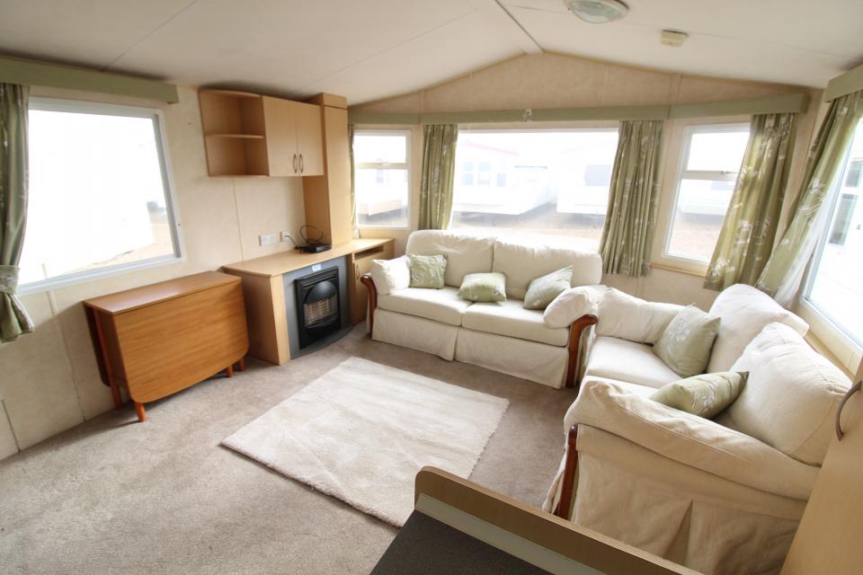 A 12ft wide 2 bedroom caravan. The lounge has free standing furniture, apex ceiling and an LPG gas fire. The dining area has a free standing table. Fitted kitchen with an LPG gas cooker. Separated shower room and toilet. One twin bedroom and one double bedroom with an ensuite toilet. A good 2008 caravan.