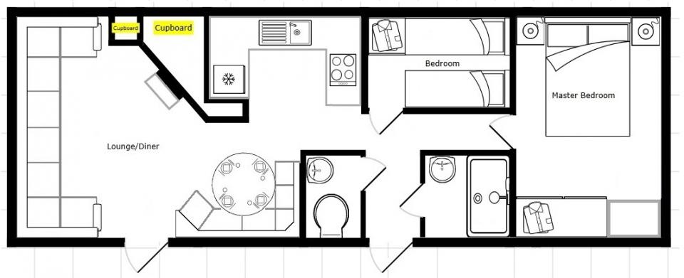 A 12ft wide 2 bedroom caravan. TO BE SOLD AS SEEN FOR REFURBISHMENT. The lounge has fixed seating and an LPG gas fire. The dining area has fixed seating and a free standing table. Fitted kitchen with an LPG gas cooker and good storage. Separated shower room and toilet. One twin bedroom and one double bedroom. A 1996 caravan.