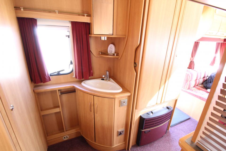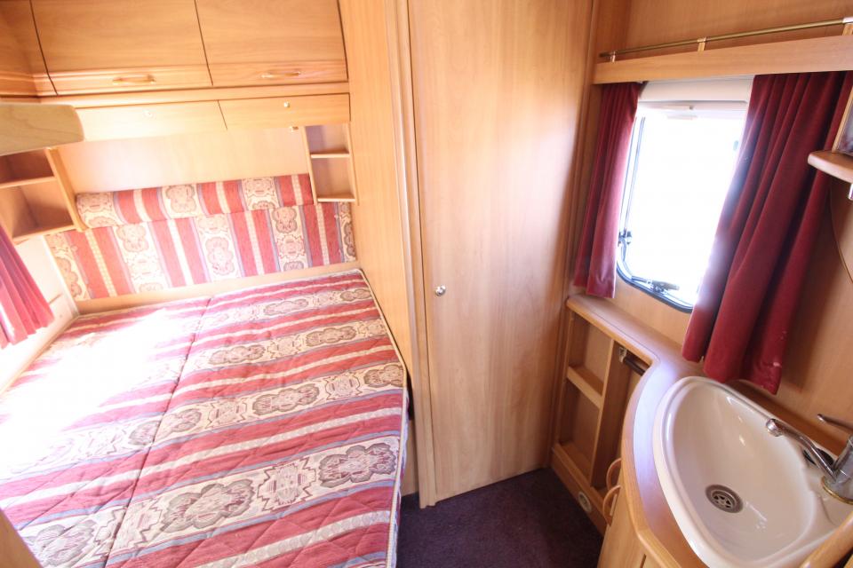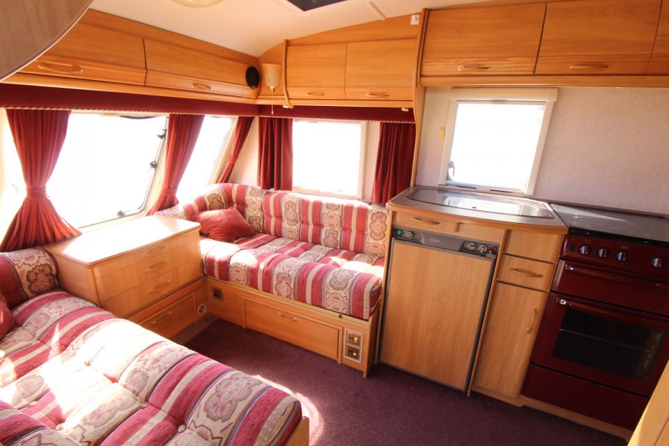 A 16x8ft 4 berth touring caravan. TO BE SOLD AS SEEN. Blow air heating. The lounge has two comfy sofas which fold out to make a double bed. A sun roof lets in plenty of light. The kitchen is fitted with a sink, fridge and LPG gas cooker. The fixed rear double bed is fitted to one side with plenty of storage below. The shower room is a wet room design and is fitted with a small toilet and basin. An additional wash basin is fitted to the side of the double bedroom. The caravan comes with a standard large side awning and an additional small porch type awning. An electric mover is also fitted. The caravan comes with many extras. A clean and tidy year 2000 caravan.