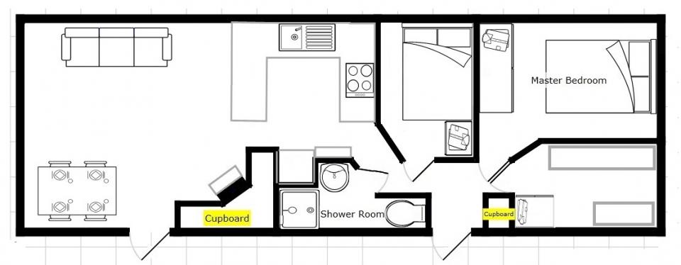 A 12ft wide 3 bedroom caravan. The lounge has a free standing sofa and an LPG gas fire. The dining area has a free standing table and chairs. Fitted kitchen with an LPG gas cooker and good storage. The shower room is fitted with a wash basin, toilet and standard sized shower cubicle. Two twin bedrooms and one double bedroom. A 2006 caravan.