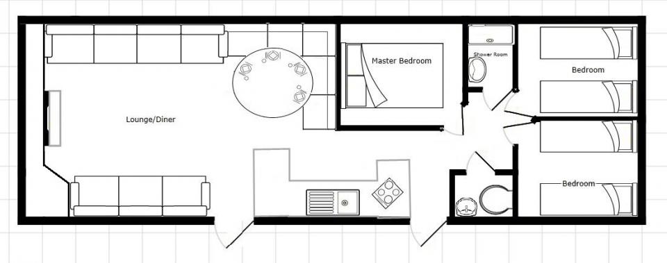 A 12ft wide 3 bedroom caravan. The lounge has fixed seating and an LPG gas fire. The dining area has fixed seating and a free standing table. Fitted kitchen with an LPG gas cooker and good storage. Separated shower room and toilet. Two twin bedrooms and one double bedroom. A 1999 caravan.