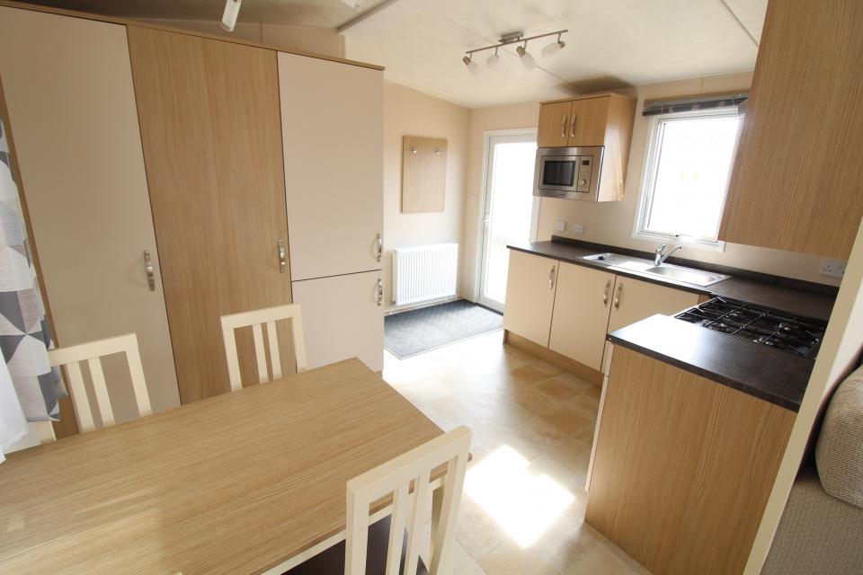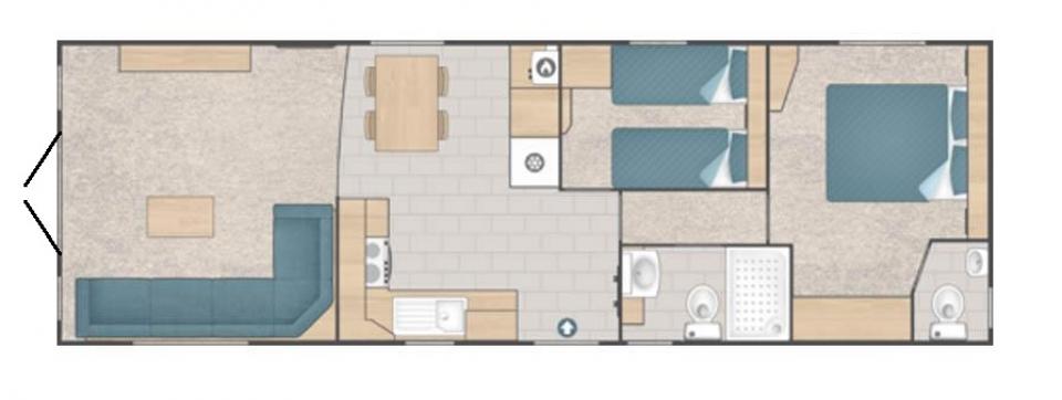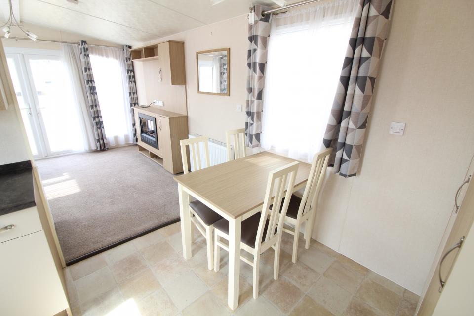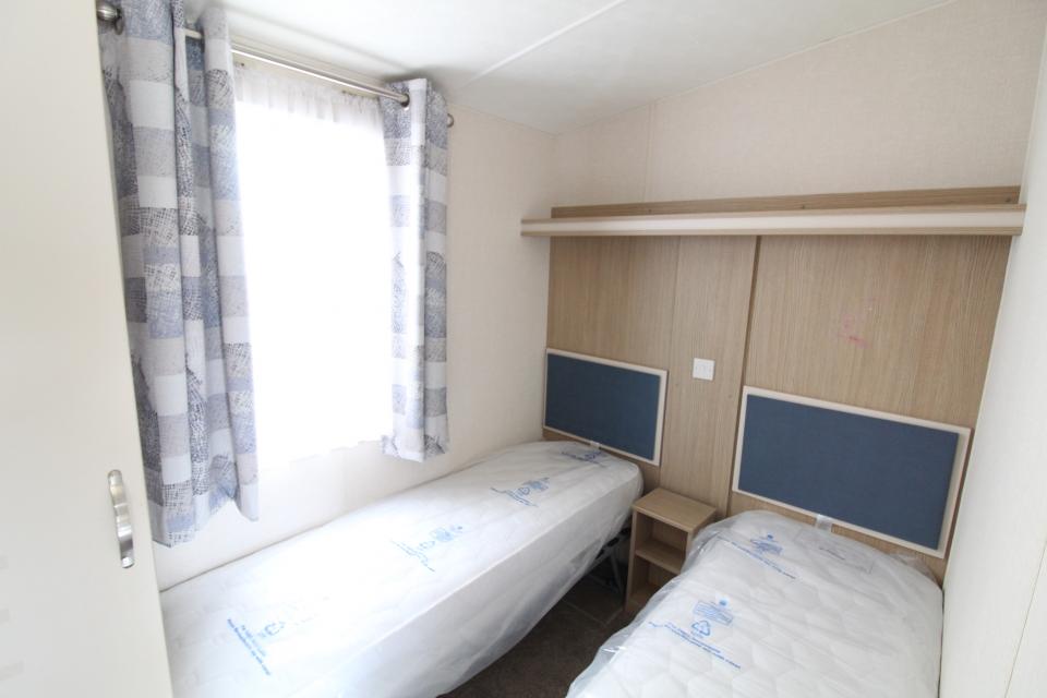 A 12ft wide 2 bedroom caravan. LPG gas central heating and double glazing. The lounge has fixed seating, apex ceiling, front opening doors and an electric fire. Tastefully decorated in a modern colour scheme. The dining area has a free standing table and chairs. Fitted kitchen with an LPG cooker and great storage. The shower room is fitted with a wash basin, toilet and large shower. One twin bedroom and one double bedroom with an ensuite toilet. An excellent 2018 caravan.