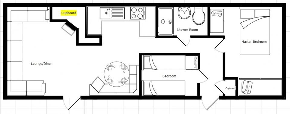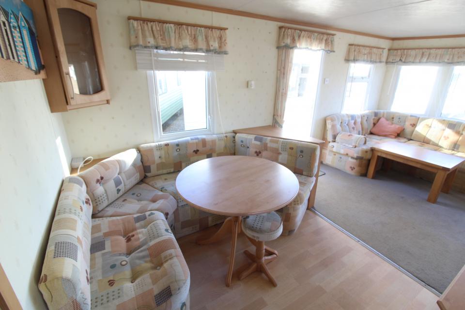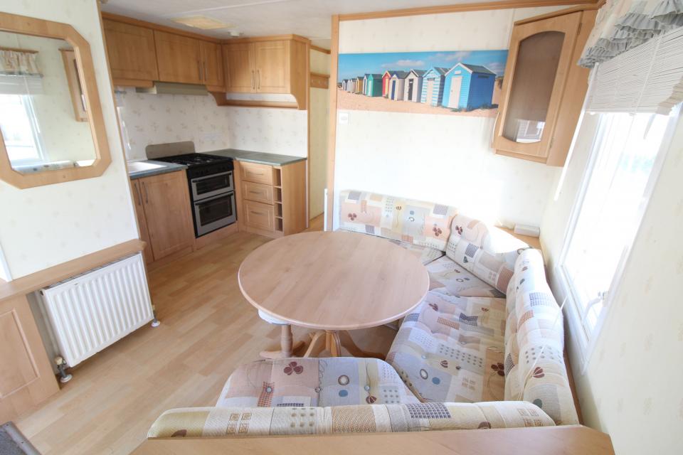A 12ft wide 2 bedroom caravan. Double glazed and an LPG gas heating/not working. The lounge has fixed seating and an LPG gas fire. The dining area has fixed seating and a free standing table. Fitted kitchen with an LPG gas cooker. Combined shower room and toilet. One twin bedroom and one double bedroom. A good 2004 caravan.