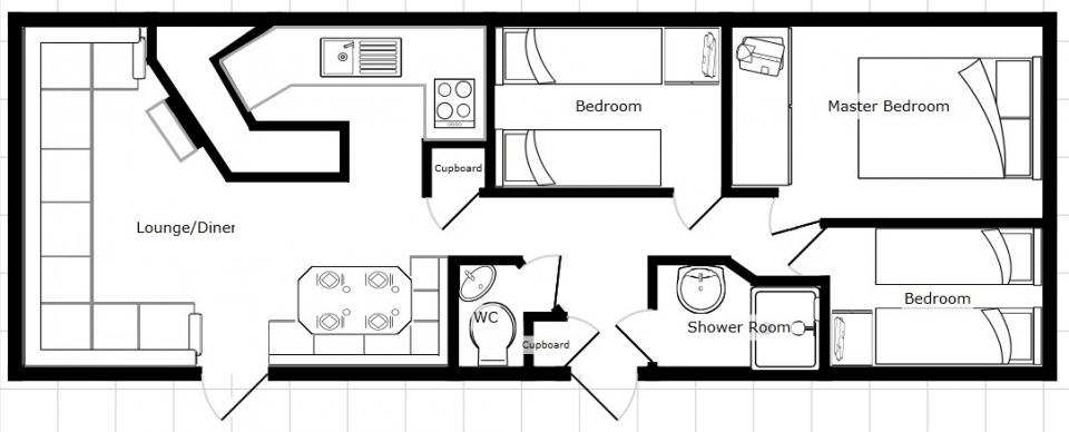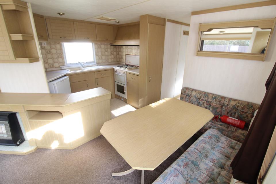 A 12ft wide 3 bedroom caravan. TO BE SOLD AS SEEN FOR REFURBISHMNET. The lounge has fixed seating and an LPG gas fire. The dining area has fixed seating and a free standing table. Fitted kitchen with and LPG gas cooker. Separated shower room and toilet. Two twin bedrooms and one double bedroom. A 1997 caravan.