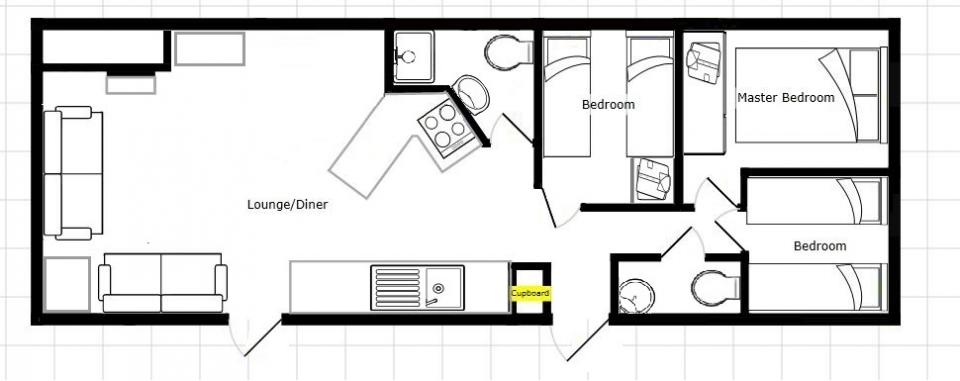 A 12ft wide 3 bedroom caravan. TO BE SOLD AS SEEN FOR REFURBISHMENT. Double glazed. The lounge has free standing furniture and an LPG gas fire. The dining area has room to put in your own furniture. Fitted kitchen with an LPG gas cooker. The shower room is fitted with a wash basin, toilet and standard shower cubicle. An additional separate toilet is also fitted to the caravan. Two twin bedrooms and one double bedroom. A 2001 caravan.