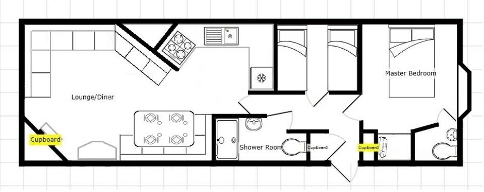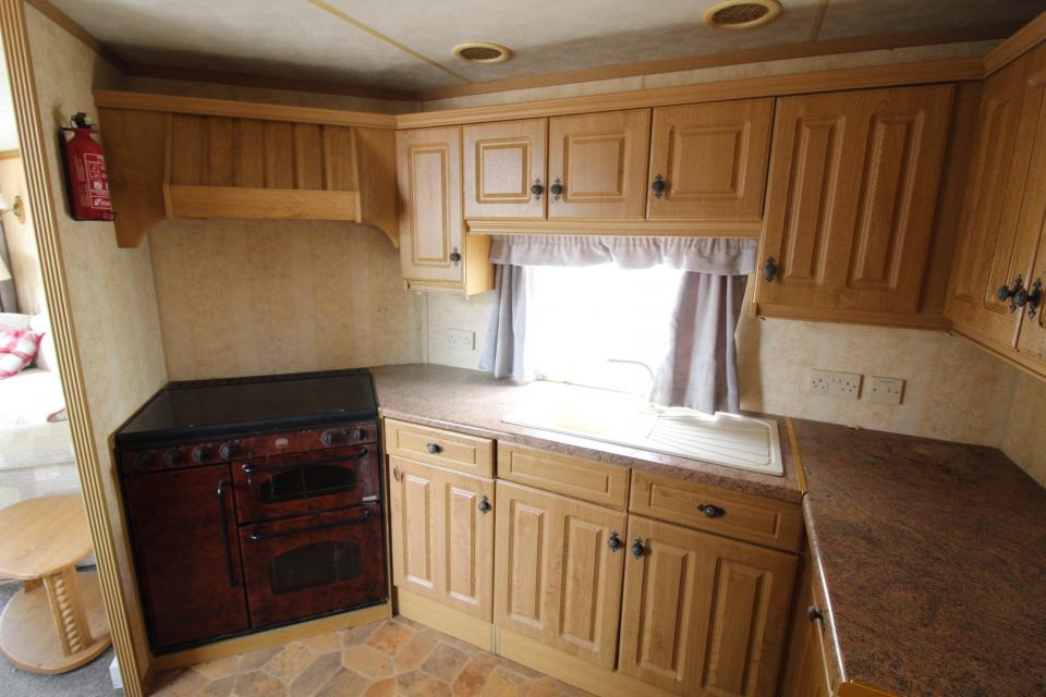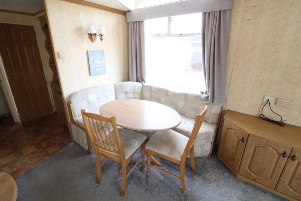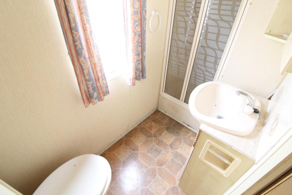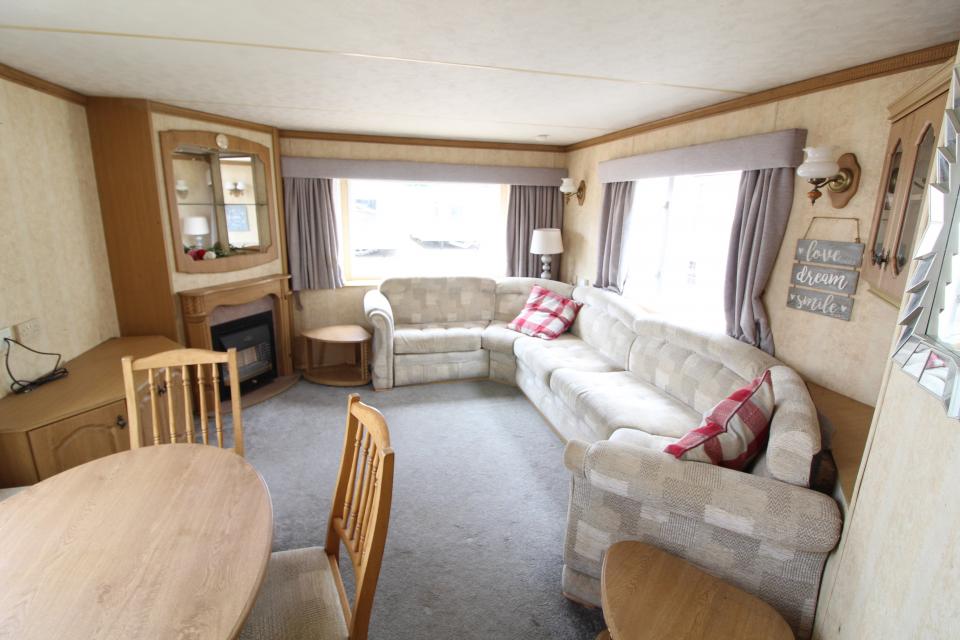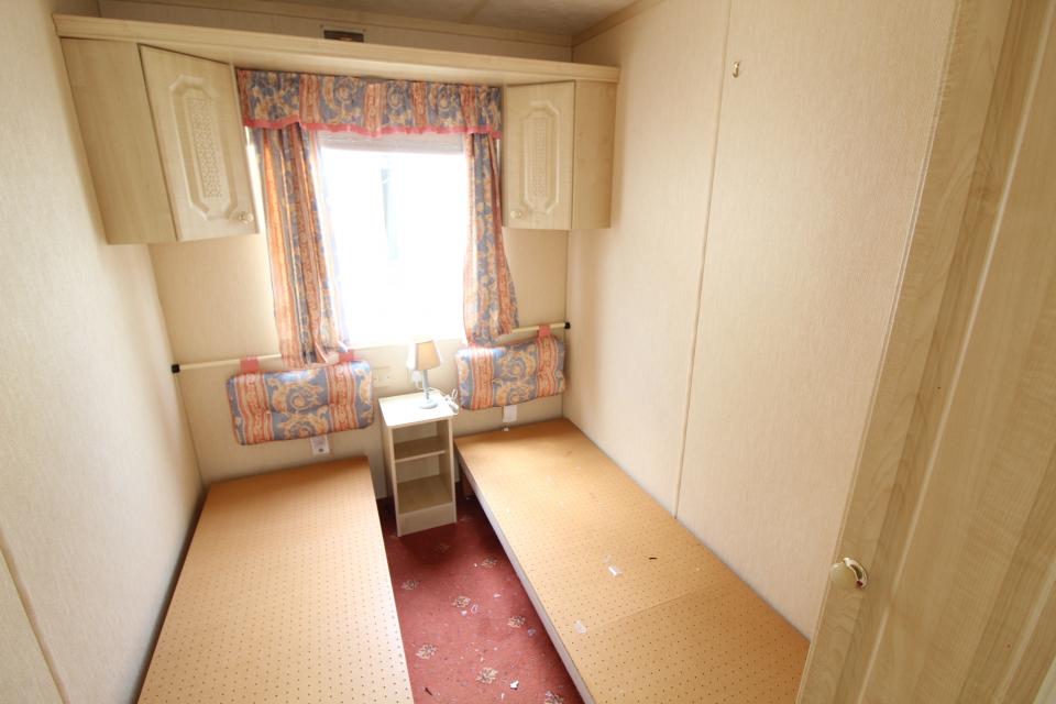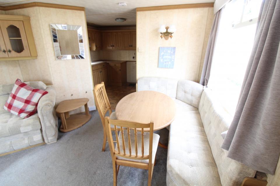 A 12ft wide 2 bedroom caravan. The lounge has fixed seating and an LPG gas fire. The dining area has fixed seating and a free standing table. Fitted kitchen with an LPG gas cooker and good storage. The shower room is fitted with a wash basin, toilet and standard shower cubicle. One twin bedroom and one double bedroom with an ensuite toilet. A 2000 caravan.