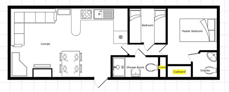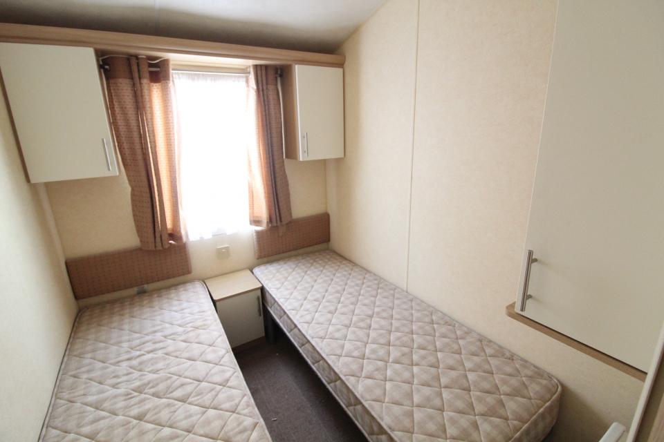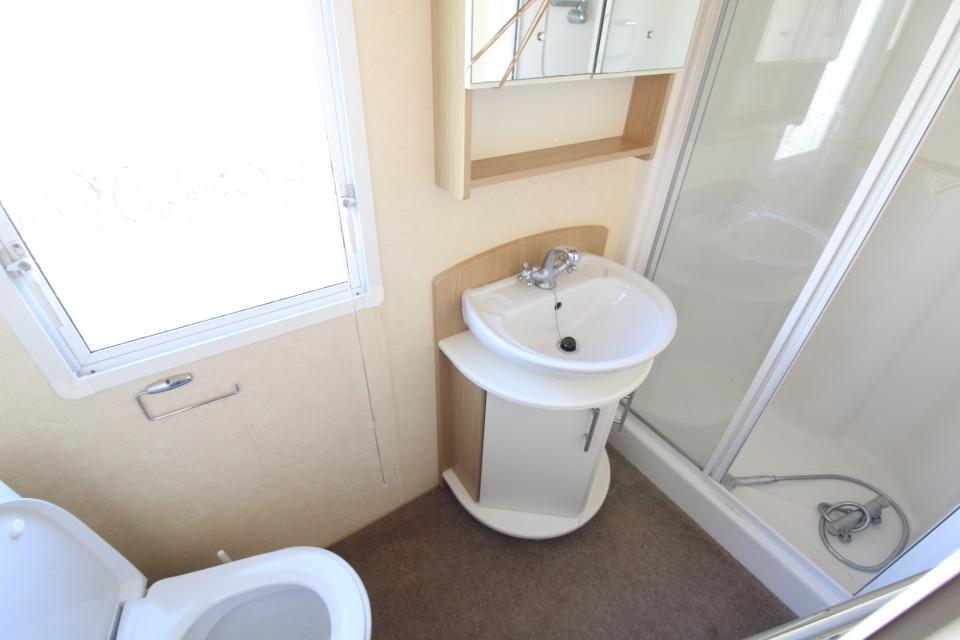 A 12ft wide 2 bedroom caravan. The lounge has fixed seating, LPG gas fire and an apex ceiling. The dining area has a free standing table and chairs. Fitted kitchen with an LPG gas cooker and good storage. The shower room is fitted with a wash basin, toilet and large shower. One twin bedroom and one double bedroom with an ensuite toilet. A good 2008 caravan.