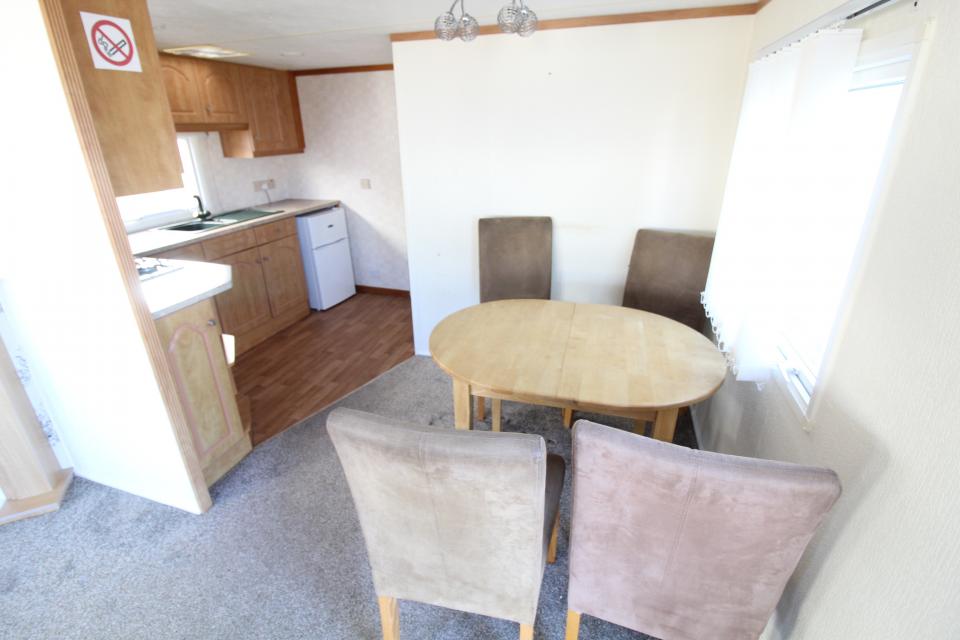 A 12ft wide 2 bedroom caravan. Double glazed and LPG gas central heating. The lounge has a free standing sofa and an electric fire. The dining area has a free standing table and chairs. Fitted kitchen with an LPG gas cooker and good storage. the shower room is fitted with a wash basin, toilet and standard shower cubicle. One twin bedroom and one double bedroom. A 1999 caravan.