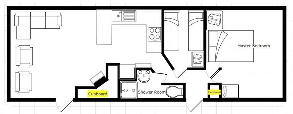 A 12ft wide 2 bedroom caravan. TO BE SOLD AS SEEN FOR REFURBISHMENT. LPG gas central heating which is untested. Double glazed. The lounge has free standing furniture and an LPG gas fire. The dining area has room for a free standing table and chairs. Fitted kitchen with an LPG gas cooker. The shower room is fitted with a wash basin, toilet and standard shower cubicle. One twin bedroom and one double bedroom.