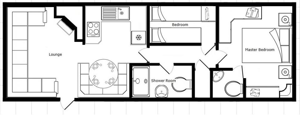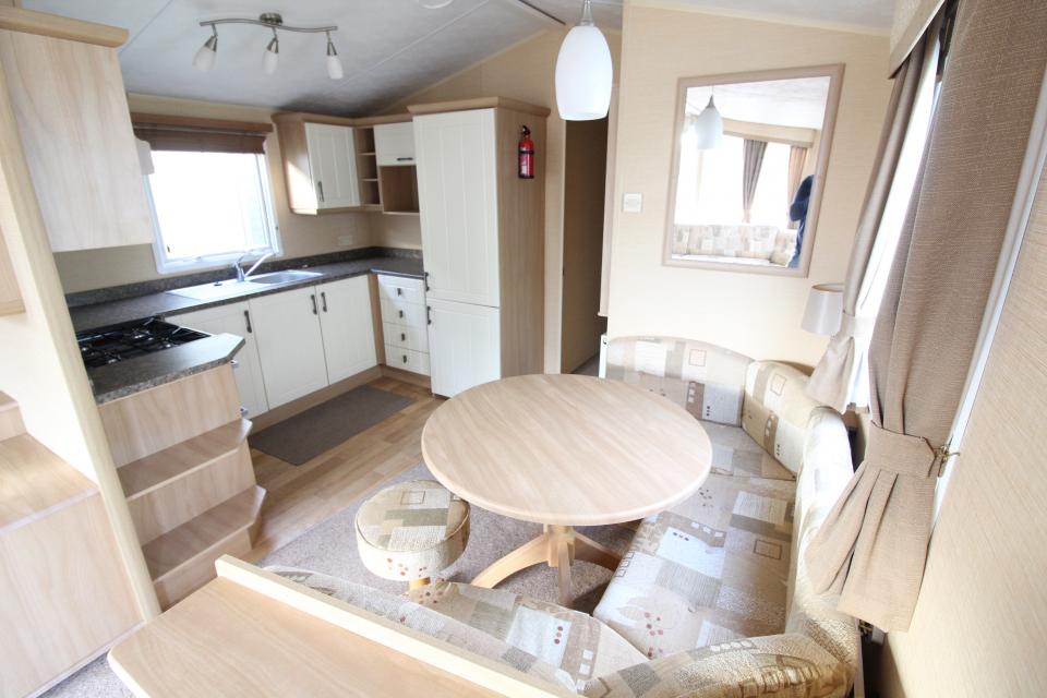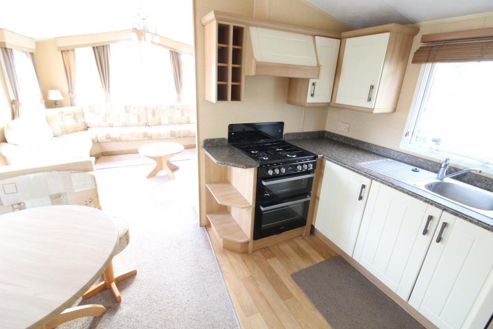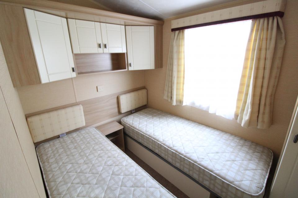 A 12ft wide 2 bedroom caravan. Double glazed with LPG gas central heating. The lounge has fixed seating, LPG gas fire and an apex ceiling. The dining area has fixed seating and a free standing table. Fitted kitchen with an LPG gas cooker and good storage. The shower room is fitted with a wash basin, toilet and a large shower cubicle. One twin bedroom and one double bedroom with an ensuite toilet. A very clean and tidy 2010 caravan.