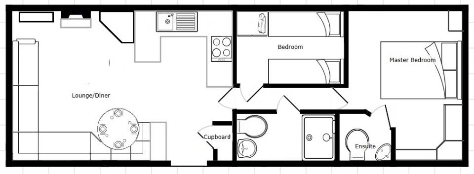 A 12ft wide 2 bedroom caravan. The lounge has fixed seating, apex ceiling and an LPG gas fire. The dining area has fixed seating and a free standing table. Fitted kitchen with an LPG gas cooker and good storage. Combined shower room and toilet. One twin bedroom and one double bedroom with ensuite toilet. A good 2004 caravan.