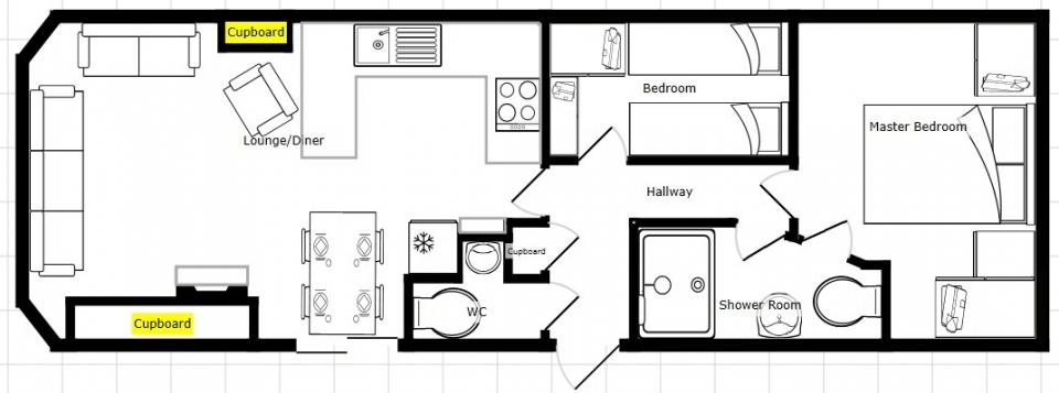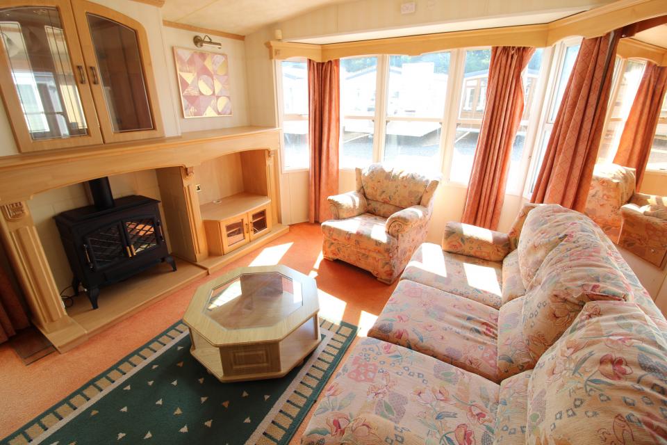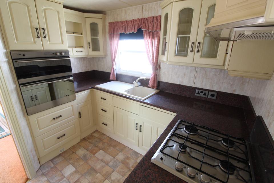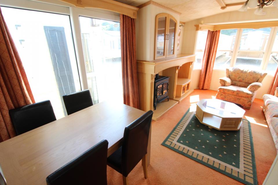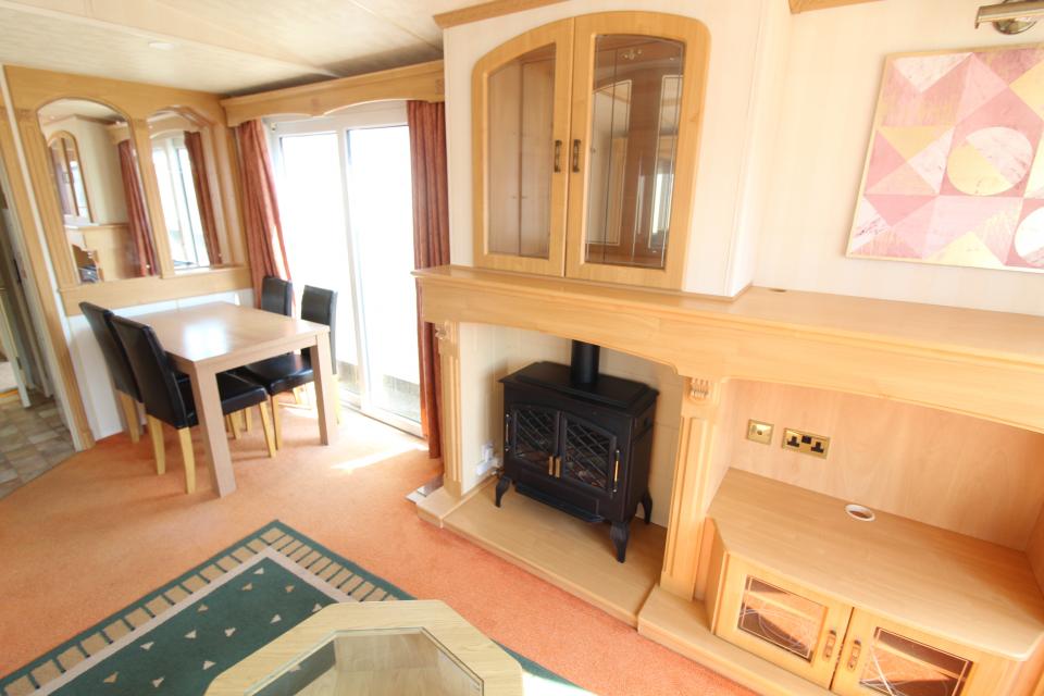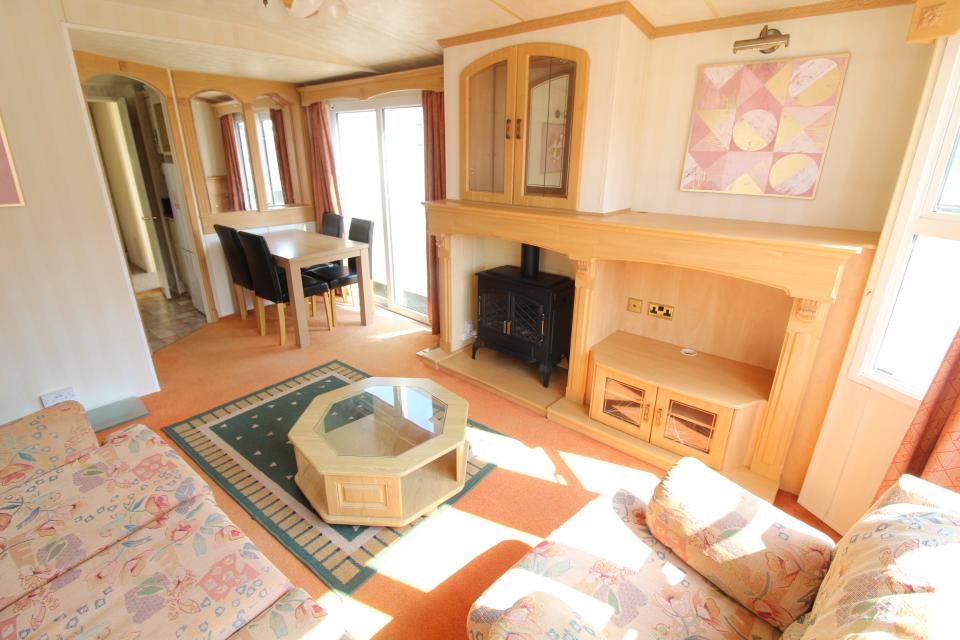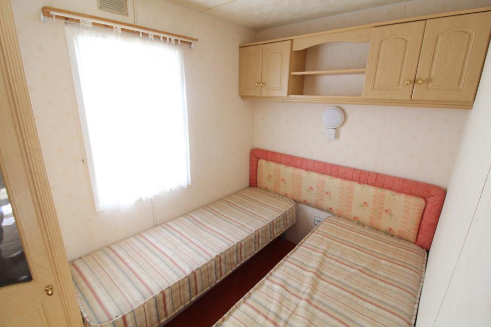 A 12ft wide 2 bedroom caravan. Double glazed with Gas warm air heating. The lounge has a free standing sofa and an electric fire. The dining area has a free standing table and chairs. Fitted kitchen with an LPG gas cooker. Combined shower room and toilet. The shower room is fitted with a half bath. One twin bedroom and one double bedroom. A 2005 caravan.