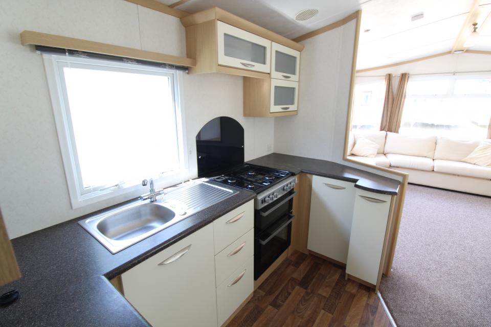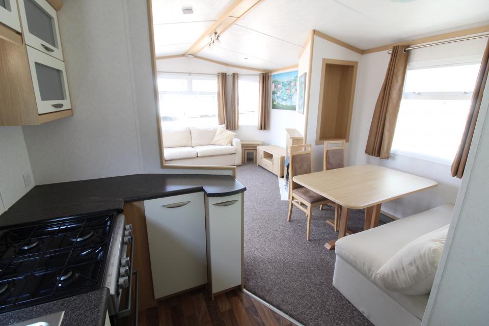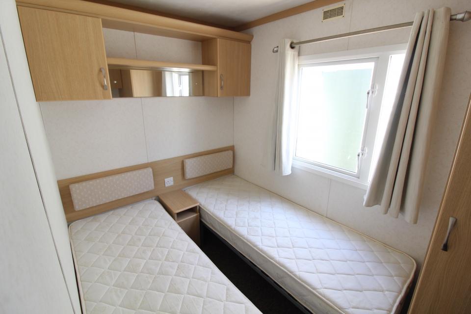 A 12ft wide 2 bedroom caravan. The lounge has fixed seating, apex ceiling and an electric fire. The separate dining area has a free standing table and fixed seating. Fitted kitchen with an LPG gas cooker and good storage. Combined shower room and toilet. One twin bedroom and one double bedroom with an ensuite toilet. An excellent 2010 caravan.