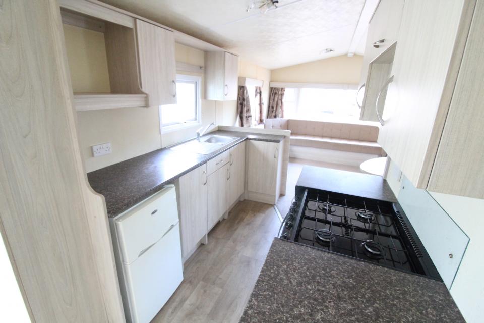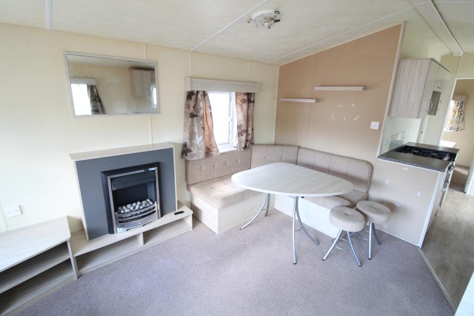 A 12ft wide 2 bedroom caravan. Double Glazed with LPG gas central heating. The lounge has fixed seating, apex ceiling and an electric fire. The dining area has fixed seating and a free standing table. Fitted kitchen with an LPG gas cooker. The shower room is fitted with a wash basin, toilet and standard shower cubicle. One twin bedroom and one double bedroom. A 2015 caravan.