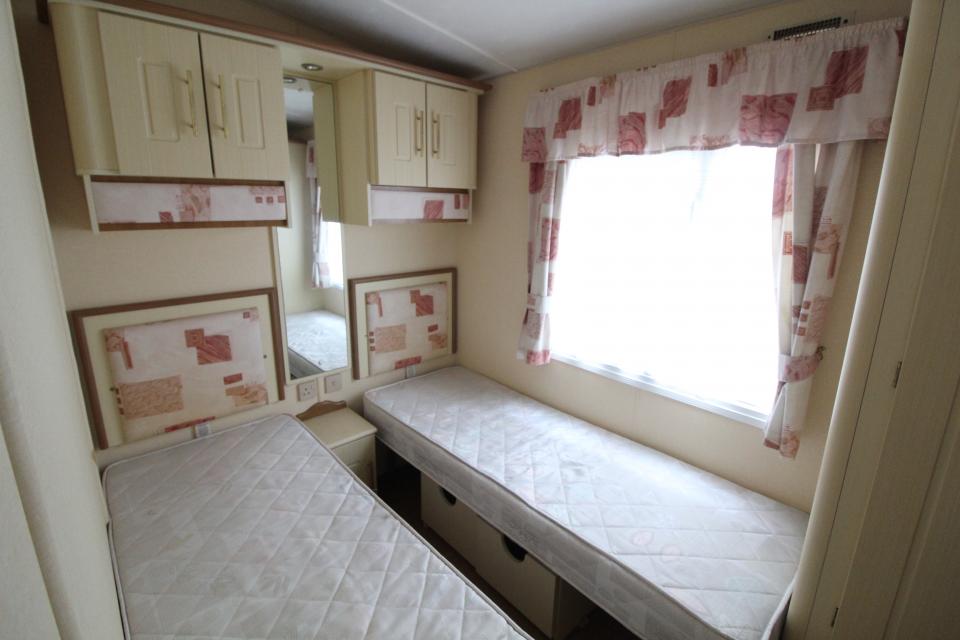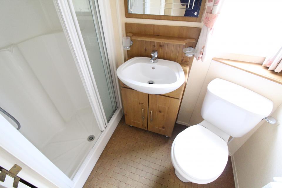 A 12ft wide 2 bedroom caravan. Double Glazed and LPG gas central heating. The lounge has fixed seating, electric fire and an apex ceiling. The dining area has a free standing table and chairs. Fitted kitchen with an LPG gas cooker and good storage. Combined shower room and toilet. One twin bedroom and one double bedroom with ensuite toilet. A good 2006 caravan.