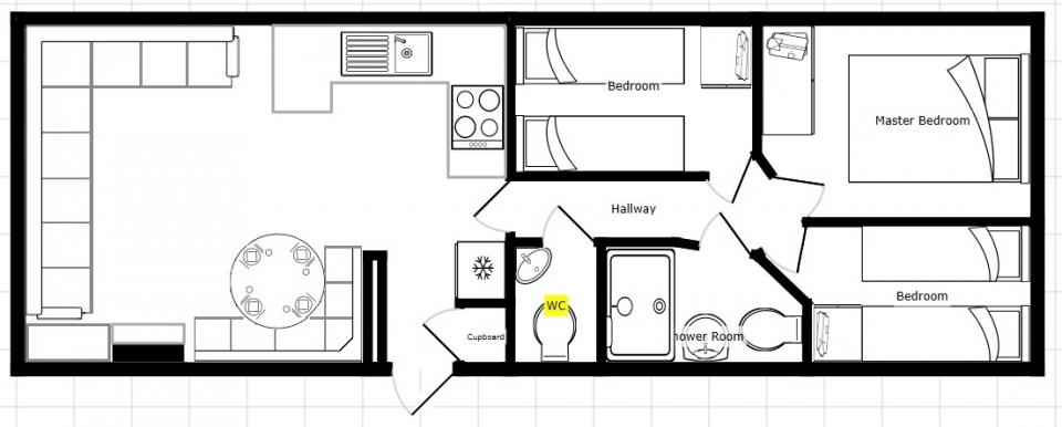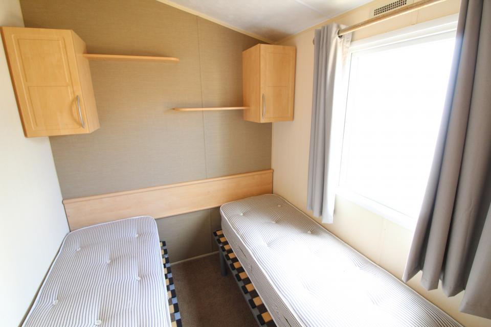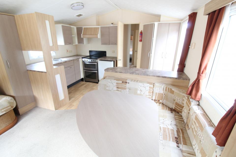 A 12ft wide 3 bedroom caravan. Double glazed with electric wall heaters. The lounge has fixed seating, electric fire and an apex ceiling. The dining area has fixed seating and a free standing table. Fitted kitchen with an electric cooker and good storage. The shower room is fitted with a wash basin, toilet and large shower. Additional separate toilet. Two twin bedrooms and one double bedroom. A good 2011 caravan.
