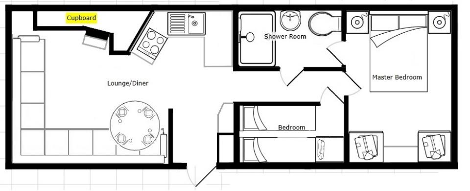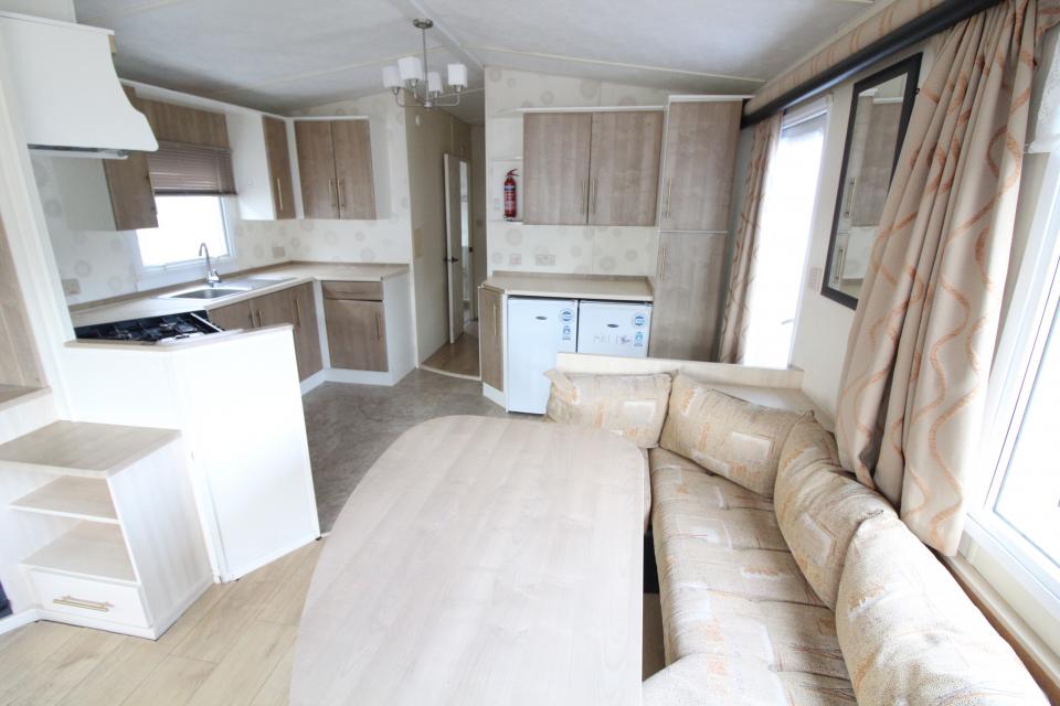 A 12ft wide 2 bedroom caravan. Double glazed and LPG gas central heating. The lounge has fixed seating, LPG gas fire and an apex ceiling. The dining area also has fixed seating and a free standing table. Fitted kitchen with an LPG gas cooker and good storage. The shower room is fitted with a wash basin, toilet and large shower. One twin bedroom and one double bedroom. A 2007 caravan.