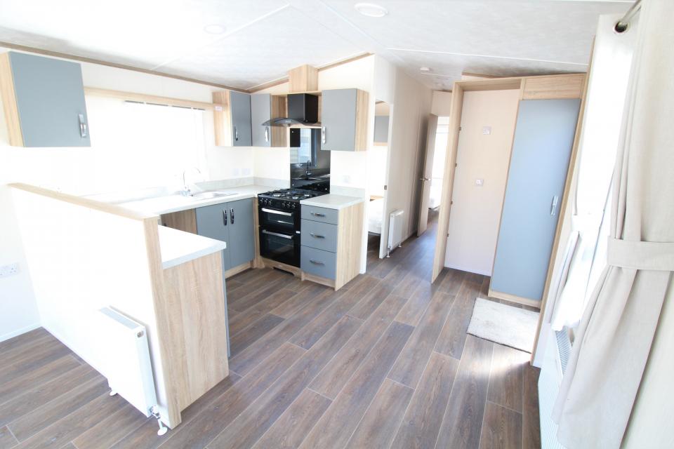 Brand New straight from the factory 12ft wide 2 bedroom caravan. Custom made to our design. Finished in attractive durable composite cladding. Constructed on a galvanised chassis. Double glazed and gas centrally heated. Front opening doors to allow you to put in your own furniture. Ideal for home builders or anyone needing accommodation. Open plan with an apex ceiling. Fitted kitchen with an LPG gas cooker and good storage. The shower room is fitted with a wash basin, toilet and a large shower cubicle. One twin bedroom and one double bedroom. Tastefully decorated in modern colour schemes. An excellent 2025 caravan. Prices apply to off site sales only.