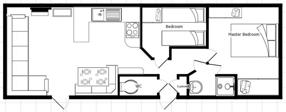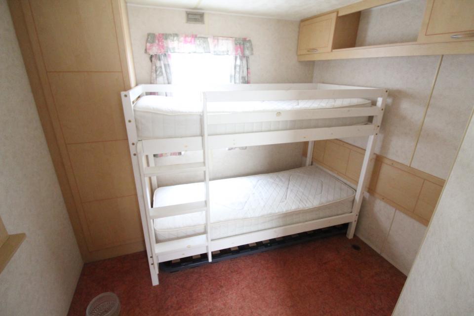 A 12ft wide 2 bedroom caravan. The lounge has fixed seating and an LPG gas fire. The dining area has fixed seating and a free standing table. Fitted kitchen with an LPG gas cooker and good storage. Separated shower room and toilet. One twin bedroom with bunk beds and one double bedroom. A good 2003 caravan.