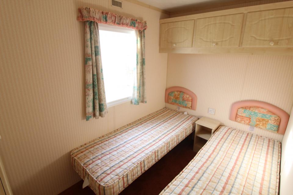 A 12ft wide 2 bedroom caravan. The lounge has fixed seating and an LPG gas fire. The separate dining area has fixed seating and a free standing table. Fitted kitchen with an LPG gas cooker. Combined shower room and toilet. One twin bedroom and one double bedroom. A good 1999 caravan.