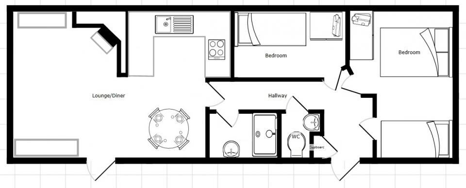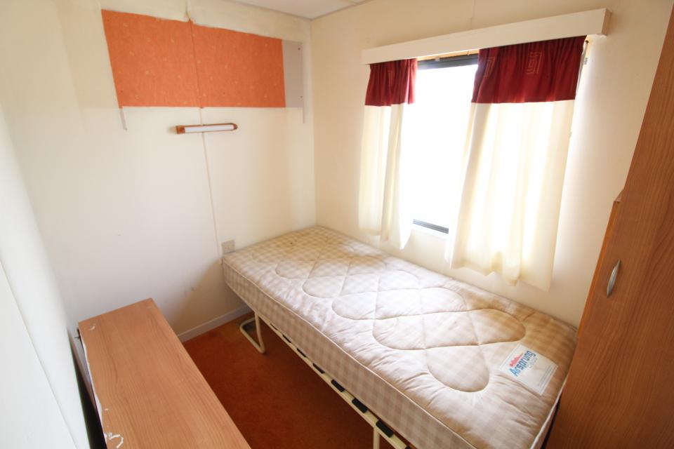 A 12ft wide 2 bedroom caravan. The lounge has room to put in your own furniture. It is fitted with an LPG gas fire and an apex ceiling. The dining area has a free standing table and chairs. Separated shower room and toilet. One twin bedroom and one double bedroom with an additional single bed making it into a family room. A 2002 caravan.
