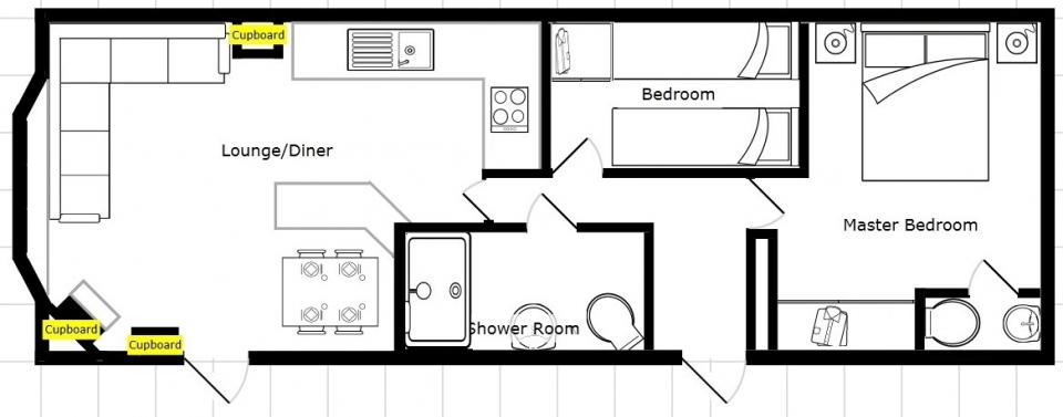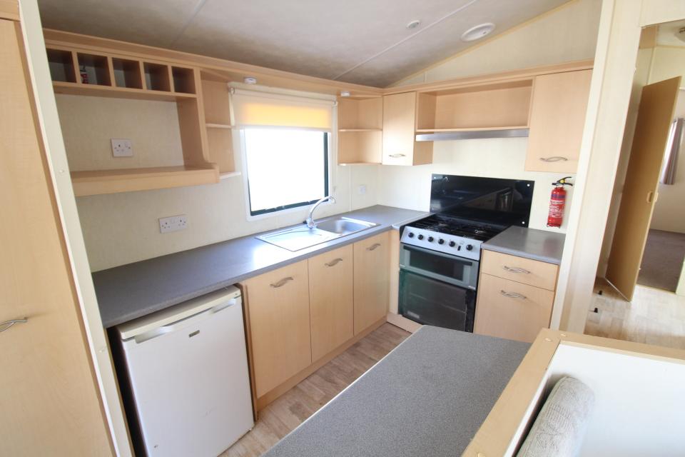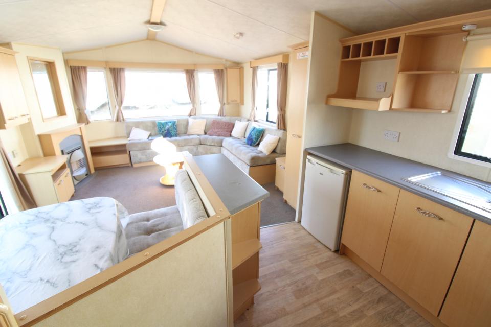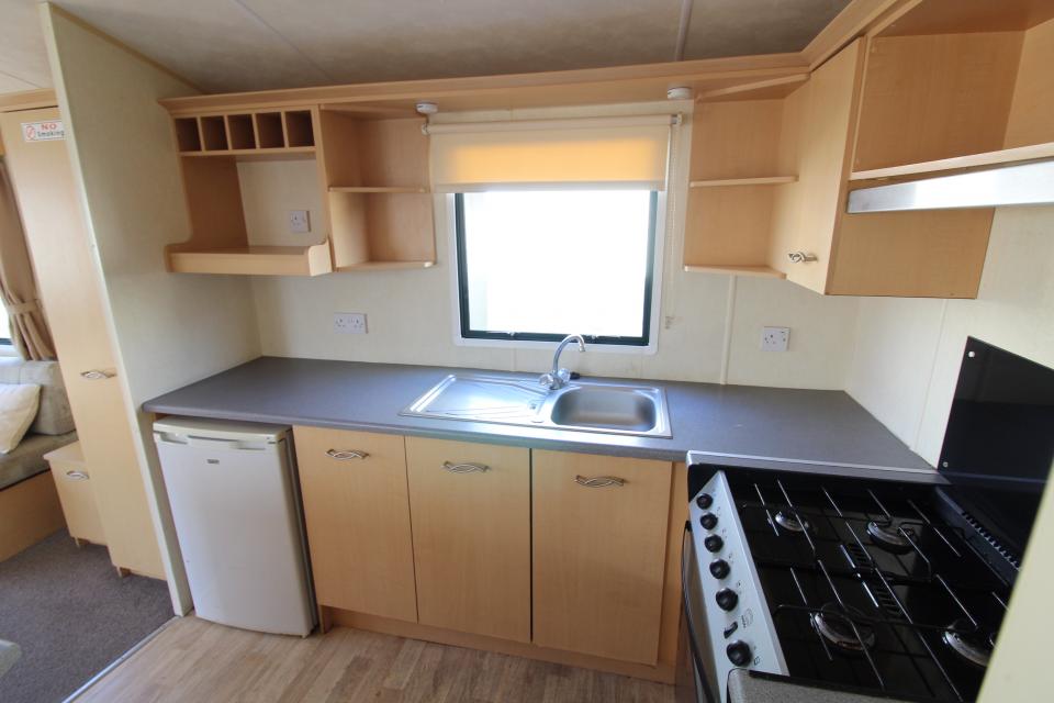 A 12ft wide 2 bedroom caravan. The lounge has fixed seating, LPG gas fire and an apex ceiling. The dining area has fixed seating and a free standing table. Fitted kitchen with an LPG gas cooker and good storage. The shower room is fitted with a wash basin, toilet and large shower cubicle. One twin bedroom and one double bedroom with an ensuite toilet. A 2006 caravan.