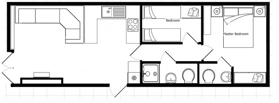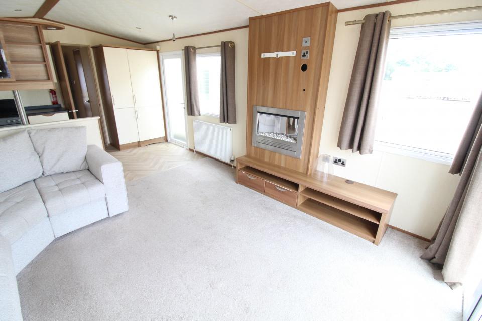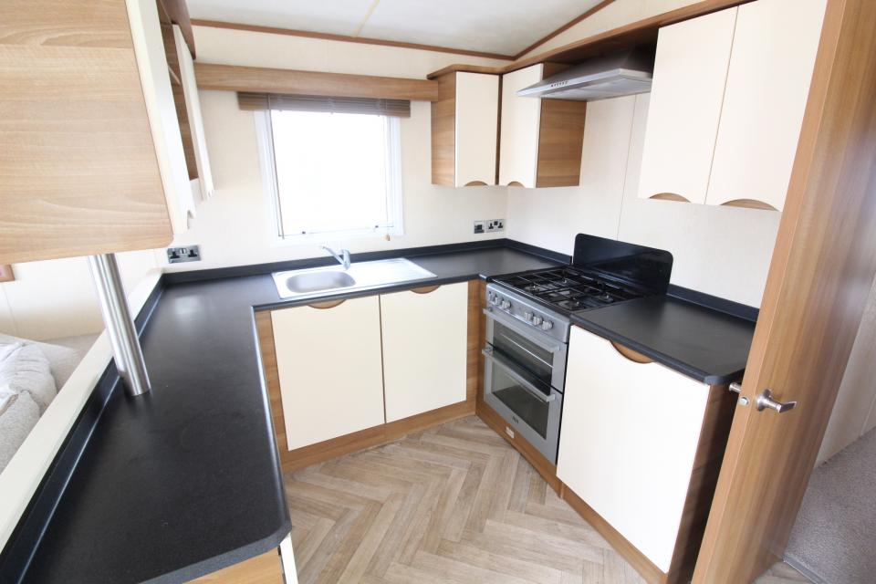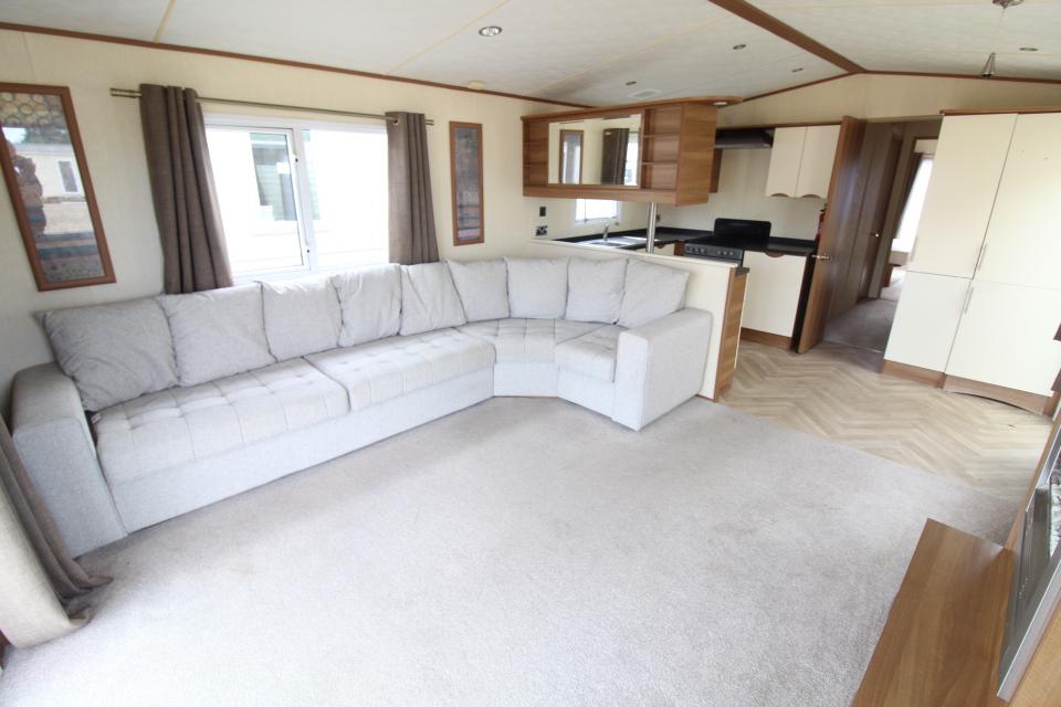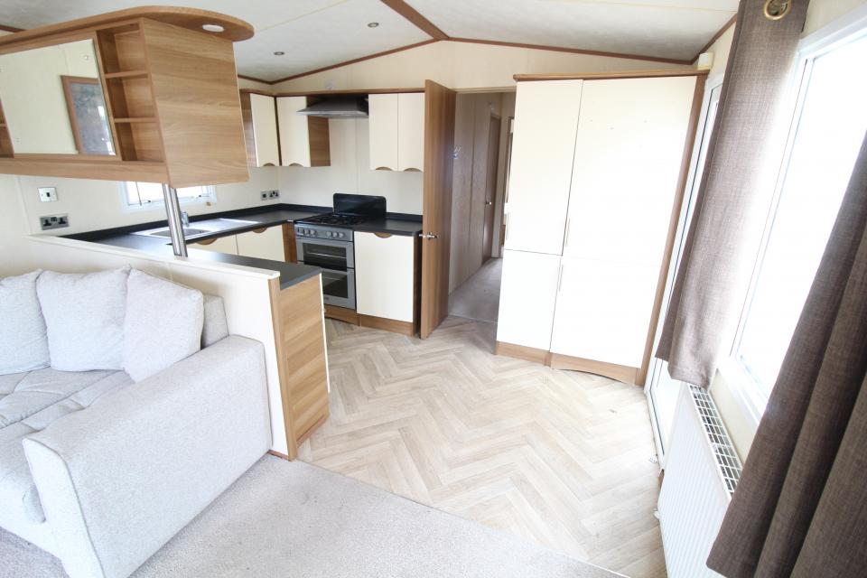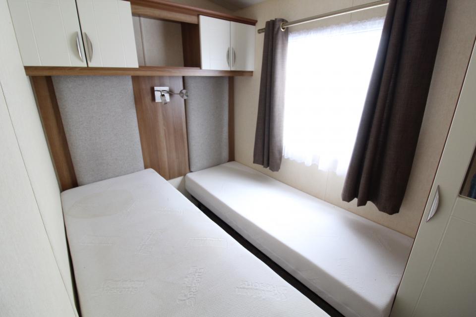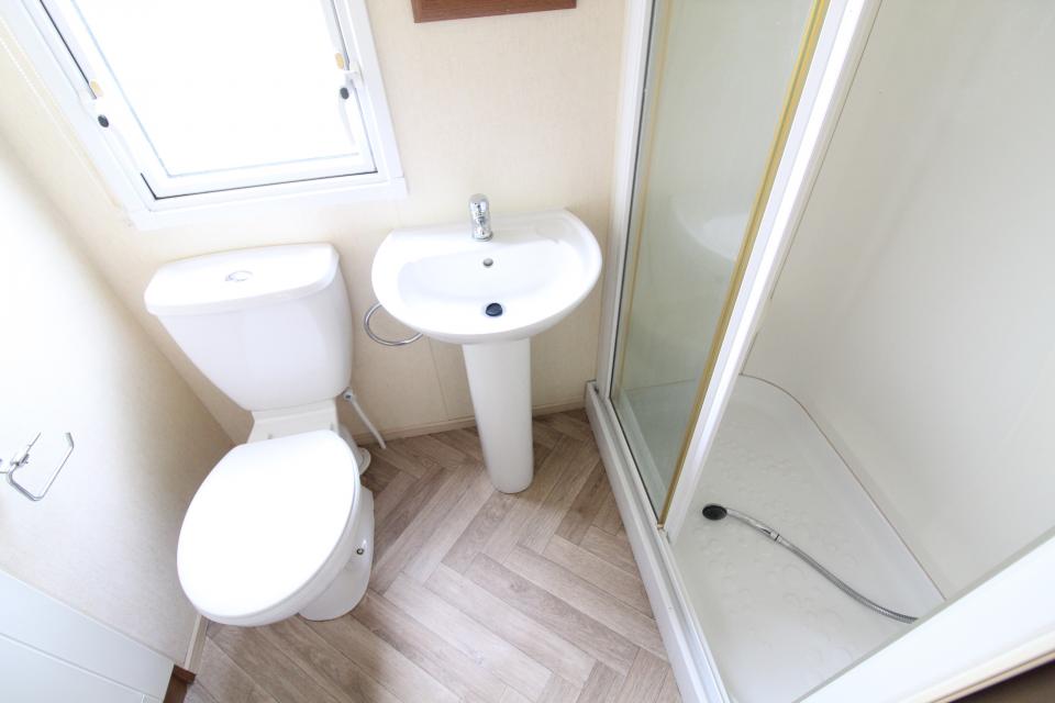 A 12ft wide 2 bedroom caravan. Double glazed with LPG gas central heating. The lounge has fixed seating, electric fire and front opening doors. The dining area has room for a free standing table and chairs. Fitted kitchen with an LPG gas cooker and good storage. The shower room is fitted with a wash basin, toilet and large shower. One twin bedroom and one double bedroom with an ensuite toilet. A very good 2011 caravan.