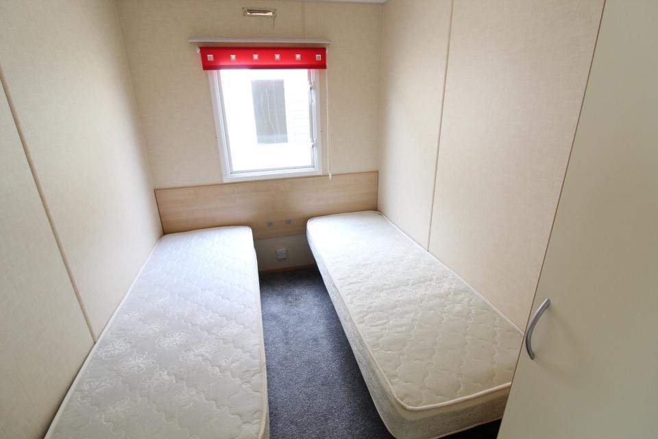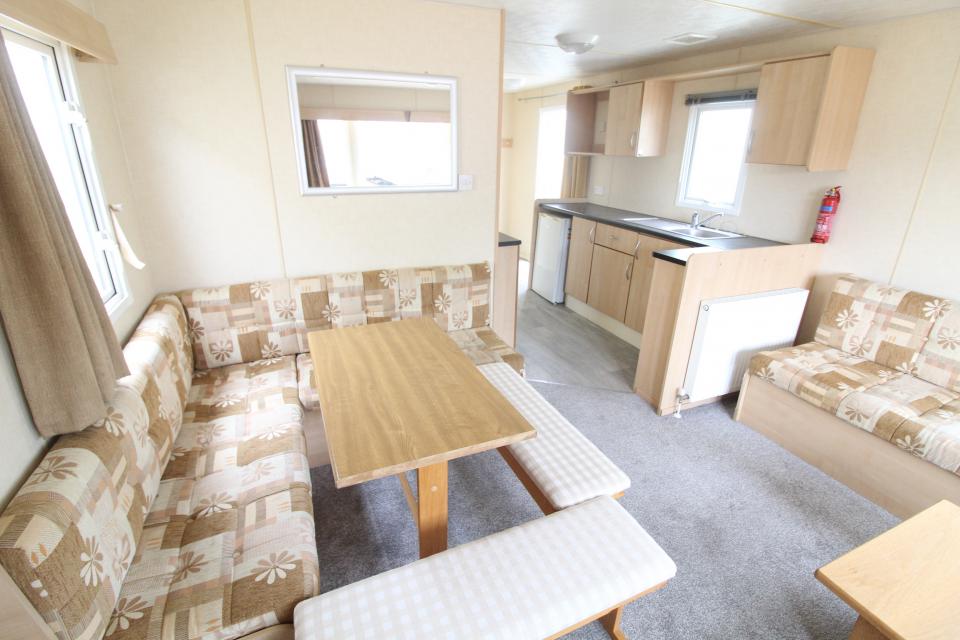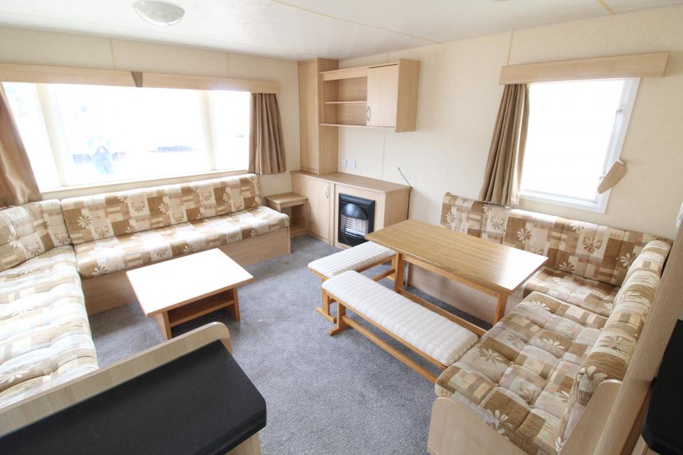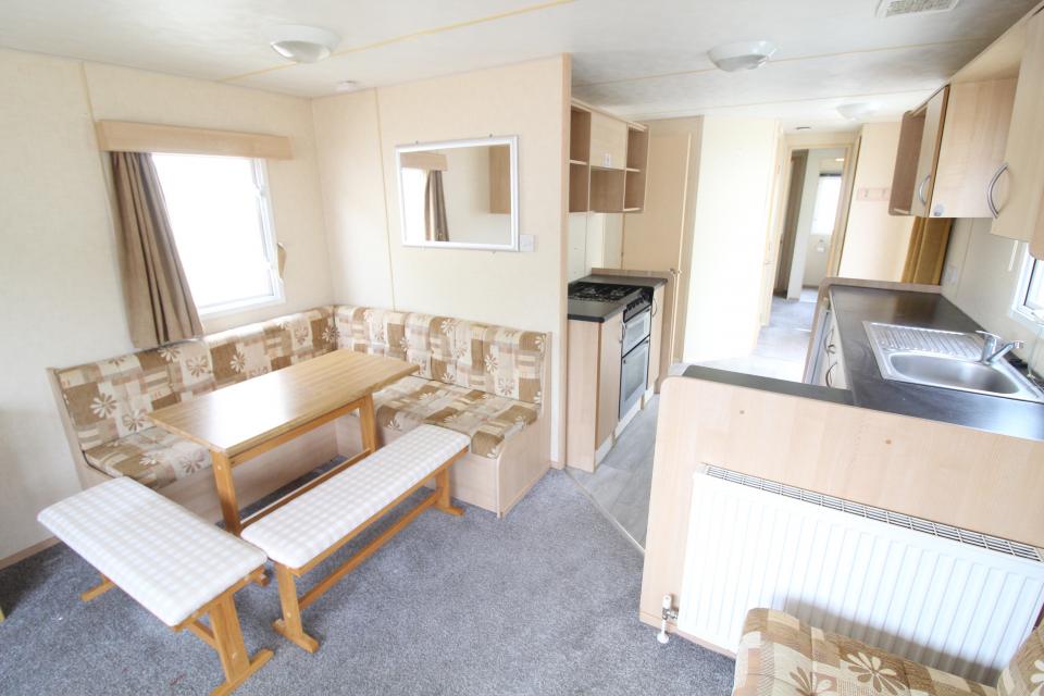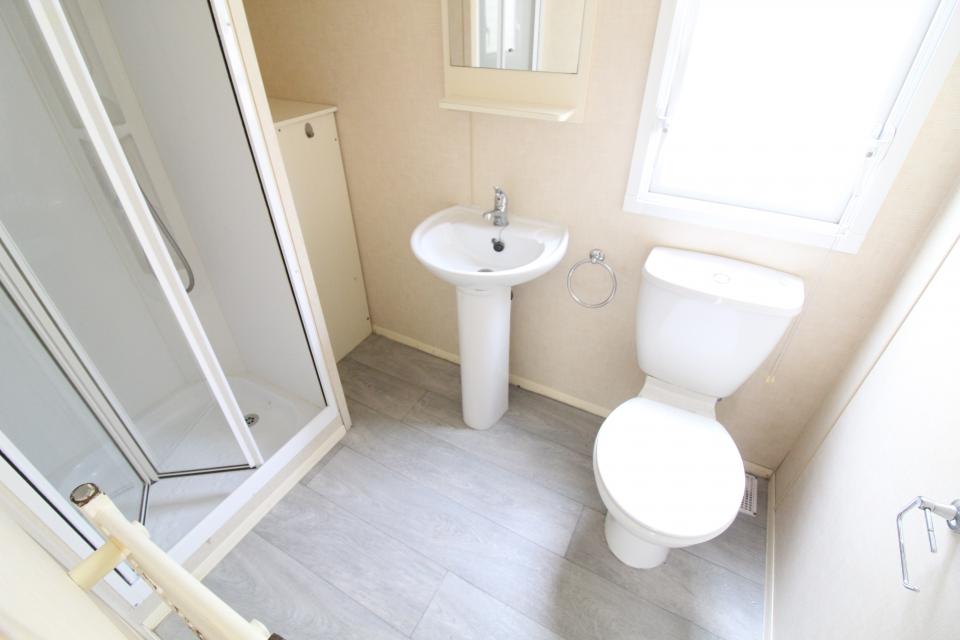 A 12ft wide 2 bedroom caravan. Double glazed and LPG gas central heating. The lounge has fixed seating, LPG gas fire and an apex ceiling. The dining area also has fixed seating and a free standing table. Fitted kitchen with an LPG gas cooker and good storage. The shower room is fitted with a wash basin, toilet and large shower. One twin bedroom and one double bedroom with an ensuite toilet. A 2010 caravan.