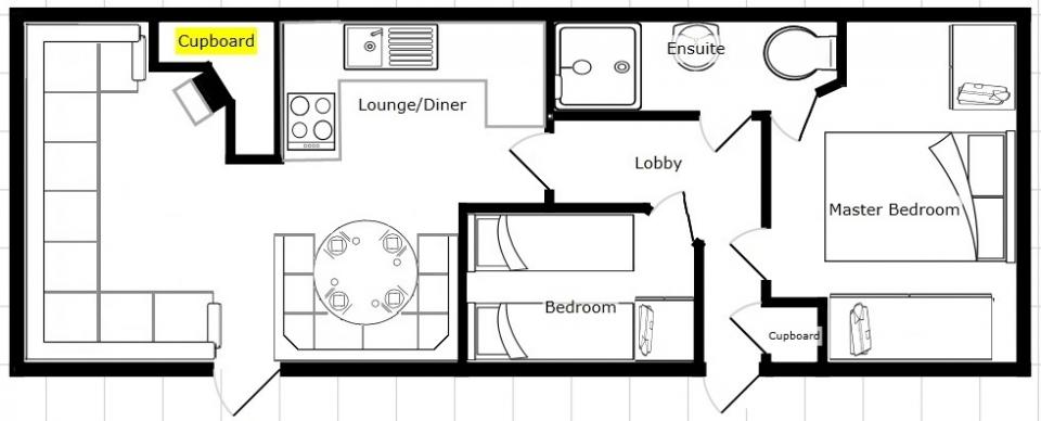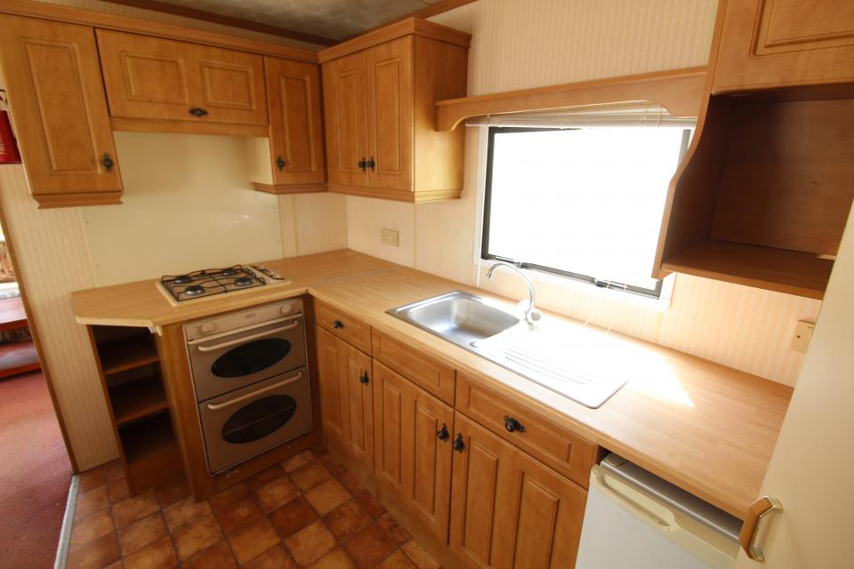 A 12ft wide 2 bedroom caravan. TO BE SOLD AS SEEN. The lounge has fixed seating and an LPG gas cooker. The dining area has fixed seating and a free standing table. Fitted kitchen with an LPG gas cooker and good storage. Combined shower room and toilet. One twin bedroom and one double bedroom. A 2000 caravan.