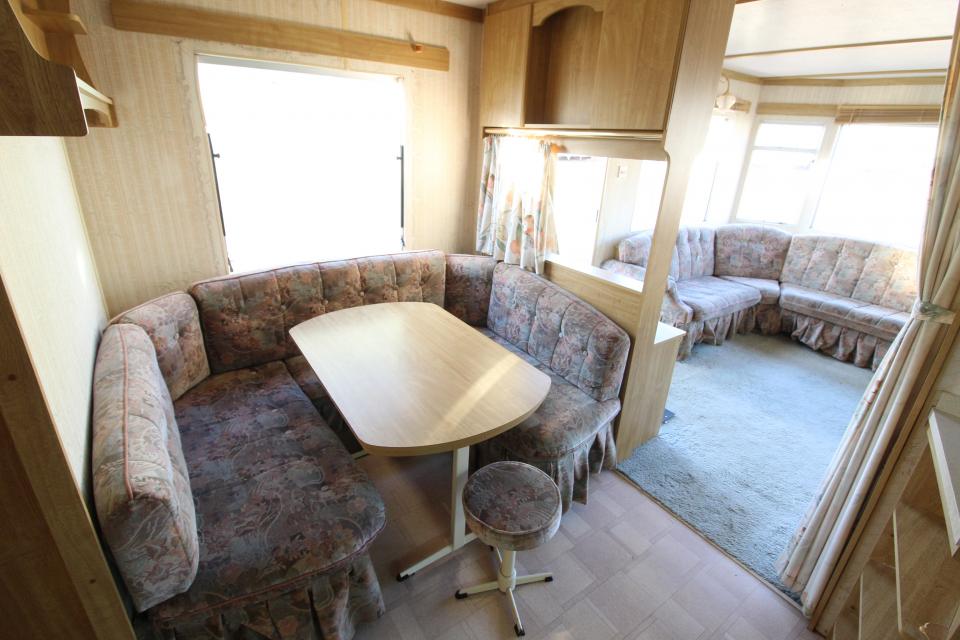 A 12ft wide 2 bedroom caravan. TO BE SOLD AS SEEN FOR REFURBISHMENT. The lounge has fixed seating and an LPG gas fire. The dining area has fixed seating and a free standing table. Fitted kitchen with an LPG gas cooker and good storage. The shower room is fitted with a wash basin, toilet and good sized shower. One twin bedroom and one double bedroom. A 1992 caravan.